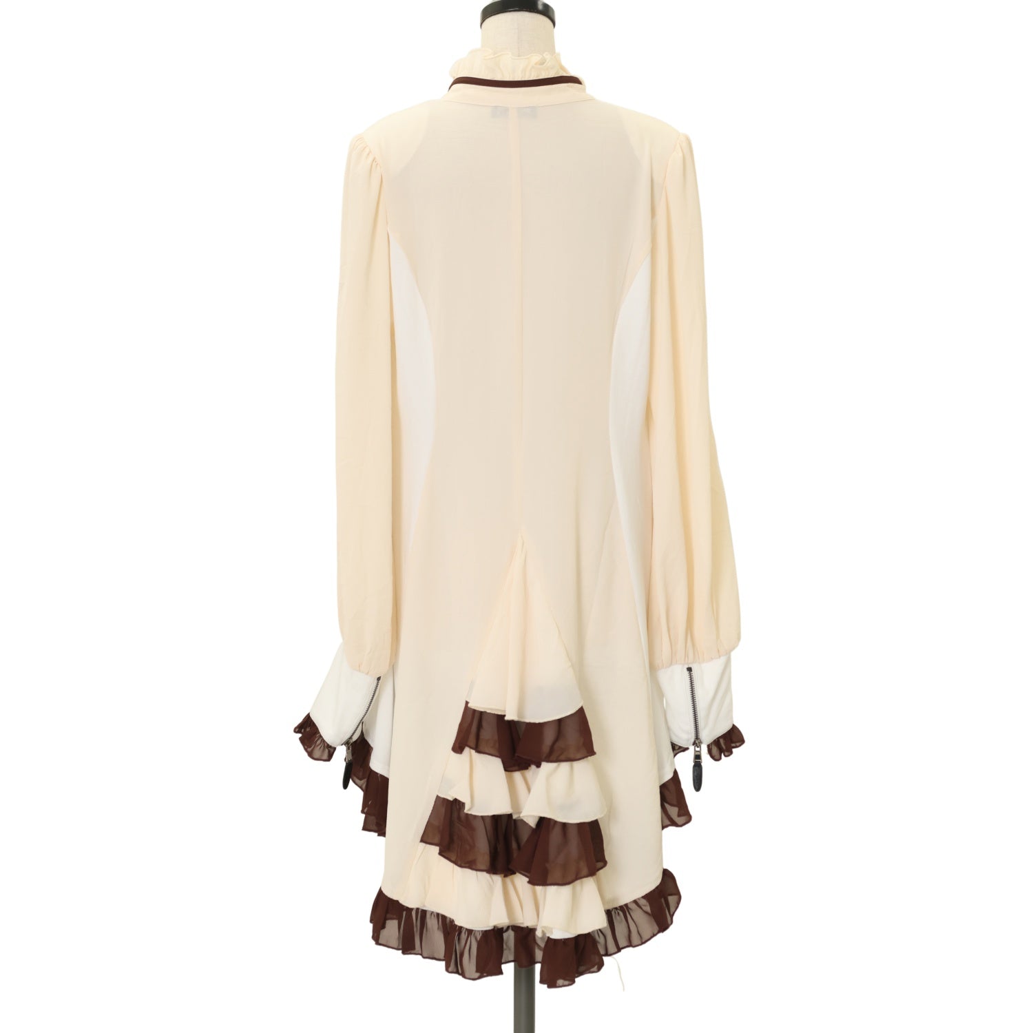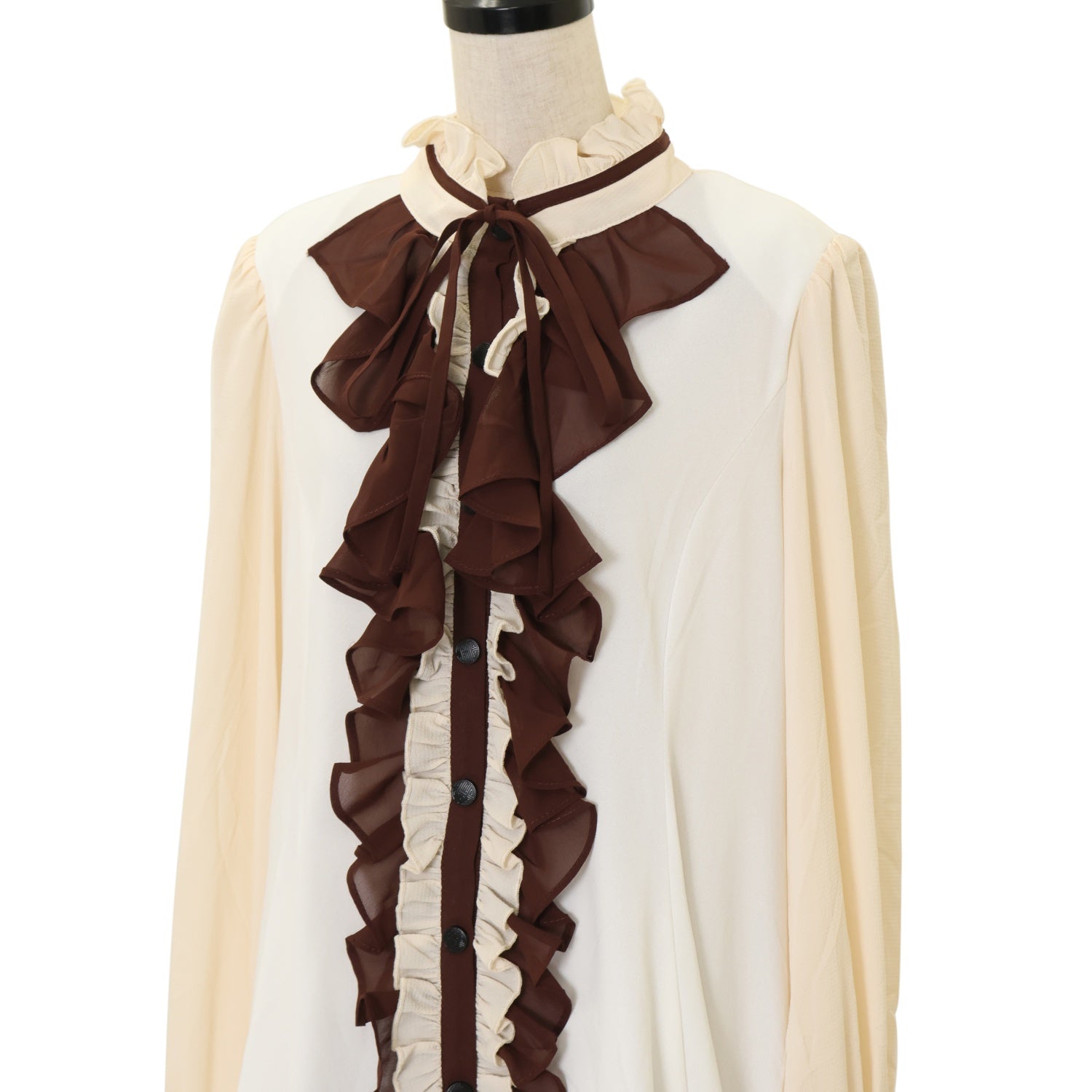 【USED】後ろロングフリルブラウス(オフ×ブラウン)