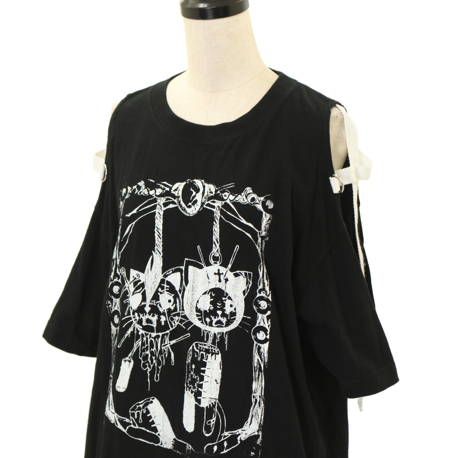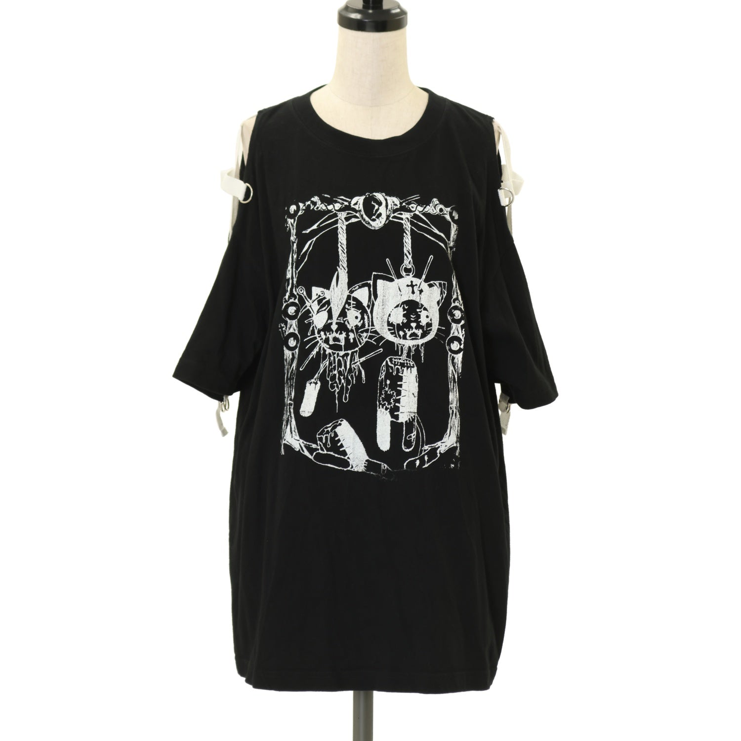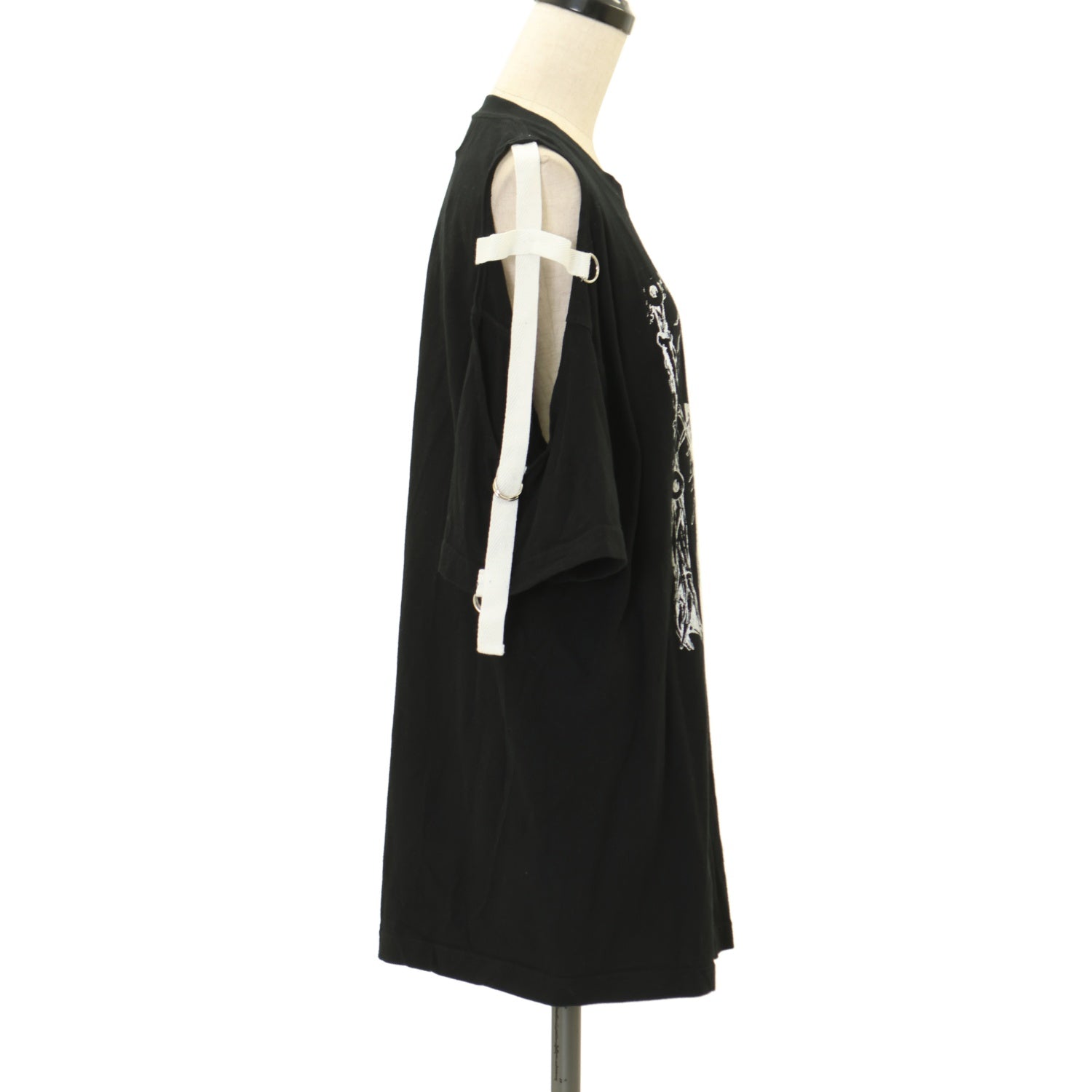 【USED】H&A PRINT&SIDE CROSS OFF SHOULDER BIG T-SHIRT(BLACK x WHITE)