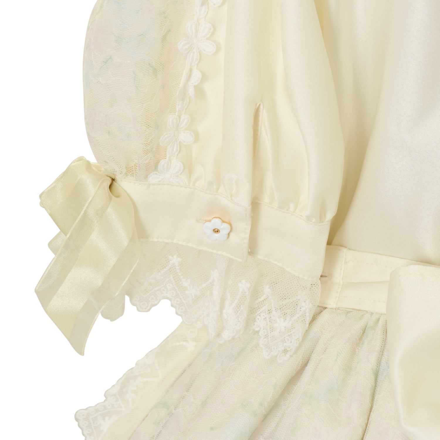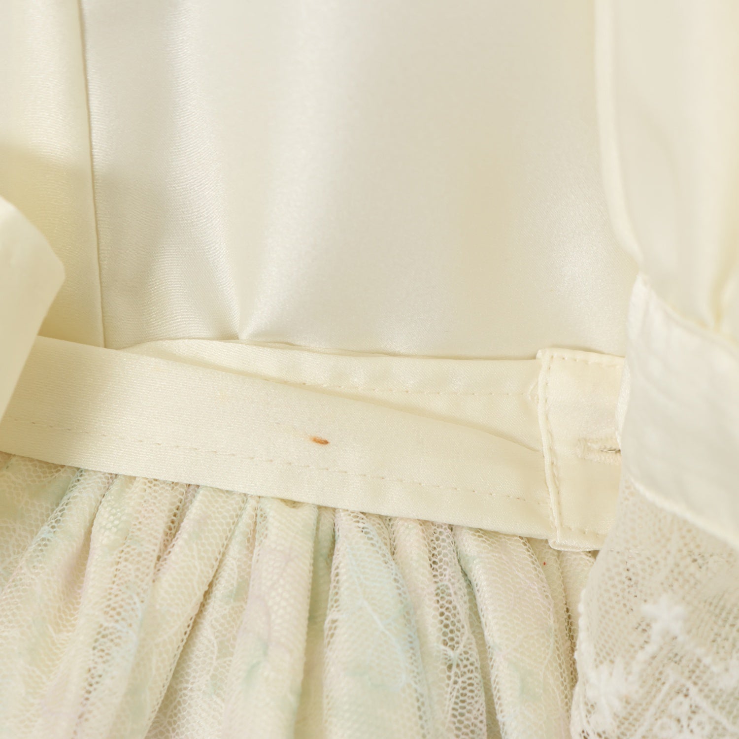襟レース・袖口内側・右ウエスト付近・スカート裏地に汚れ