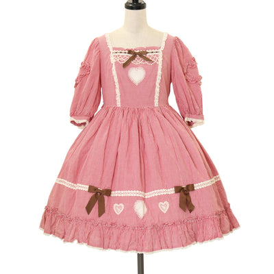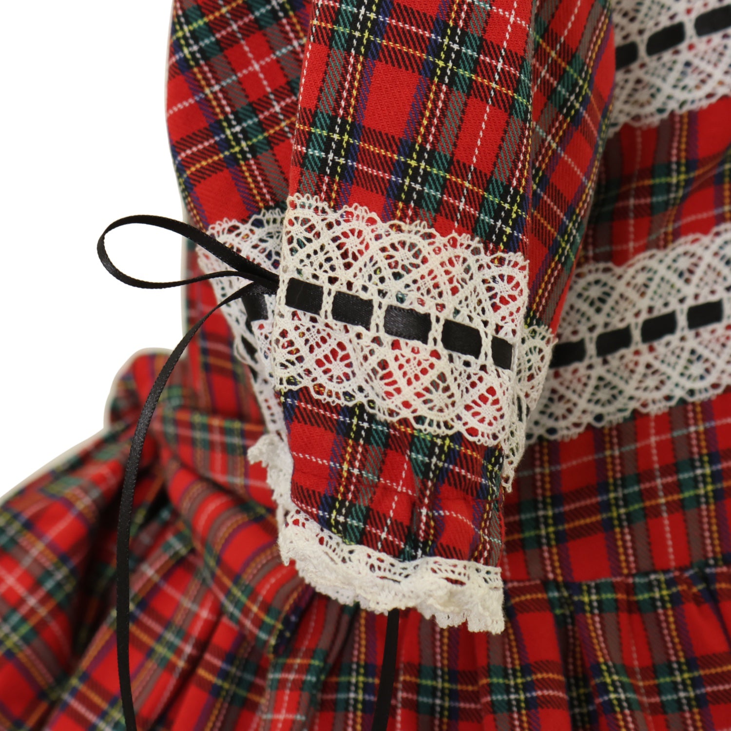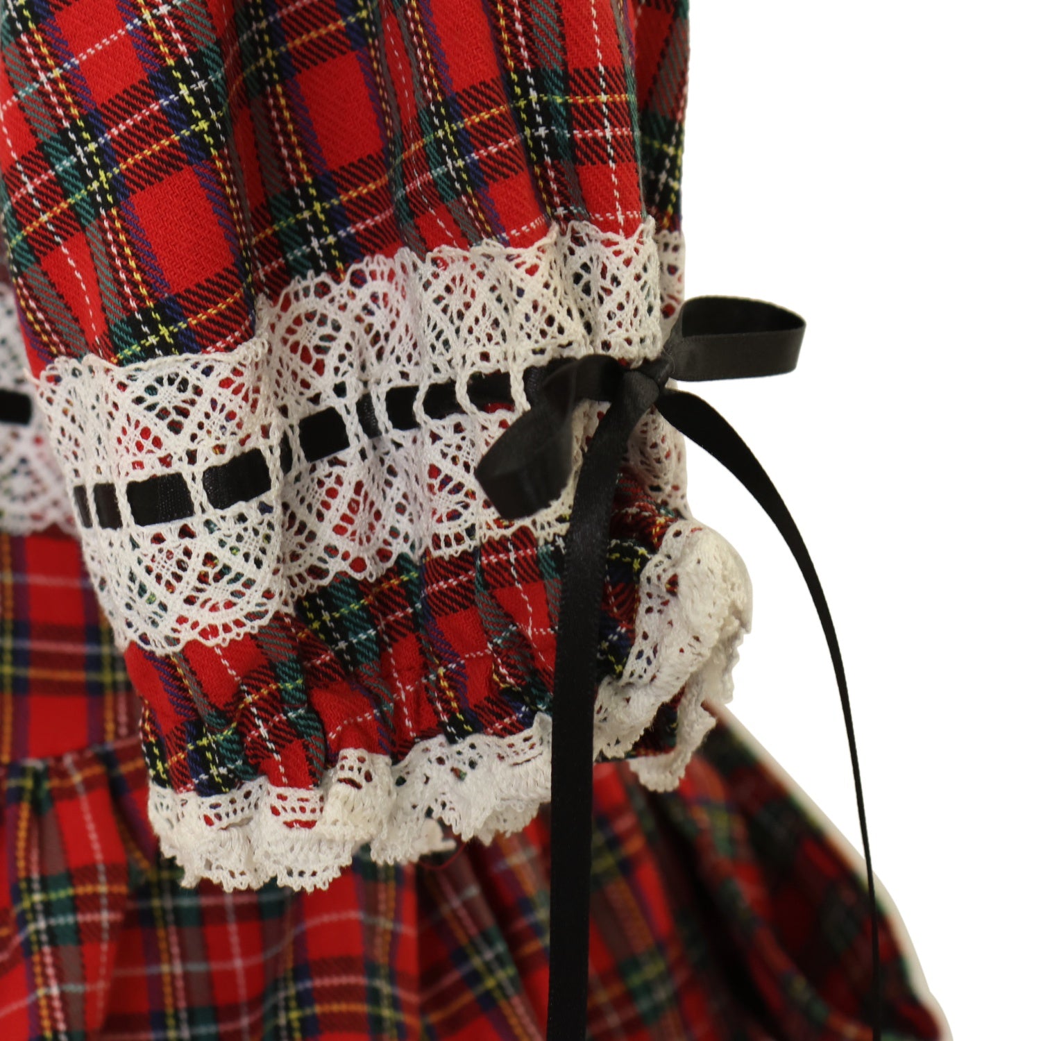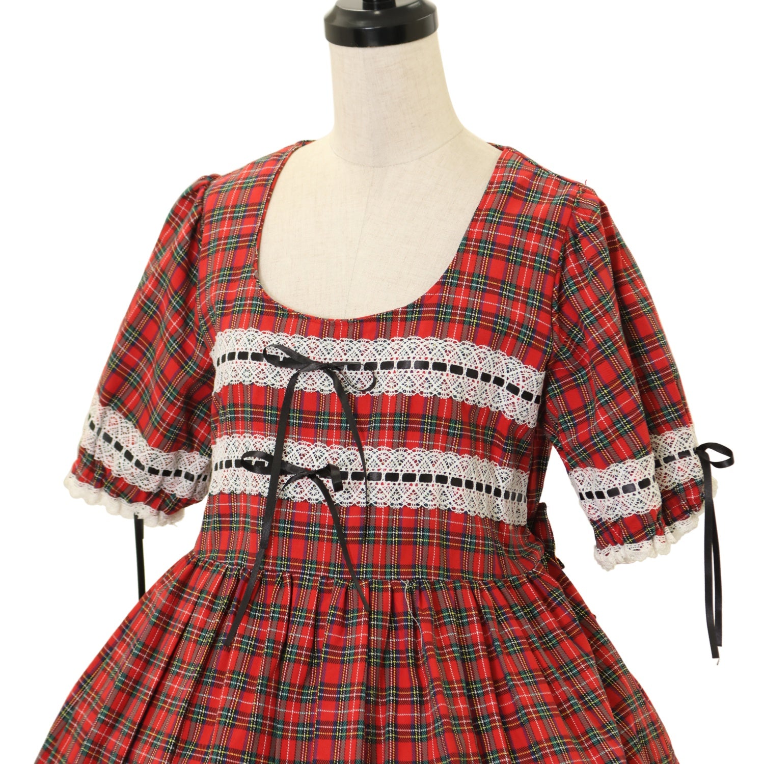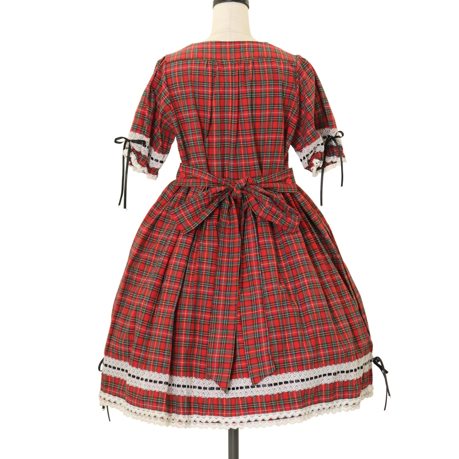 【USED】デイリーワンピース【赤タータンチェック・白レース・ハイウエスト90c丈】