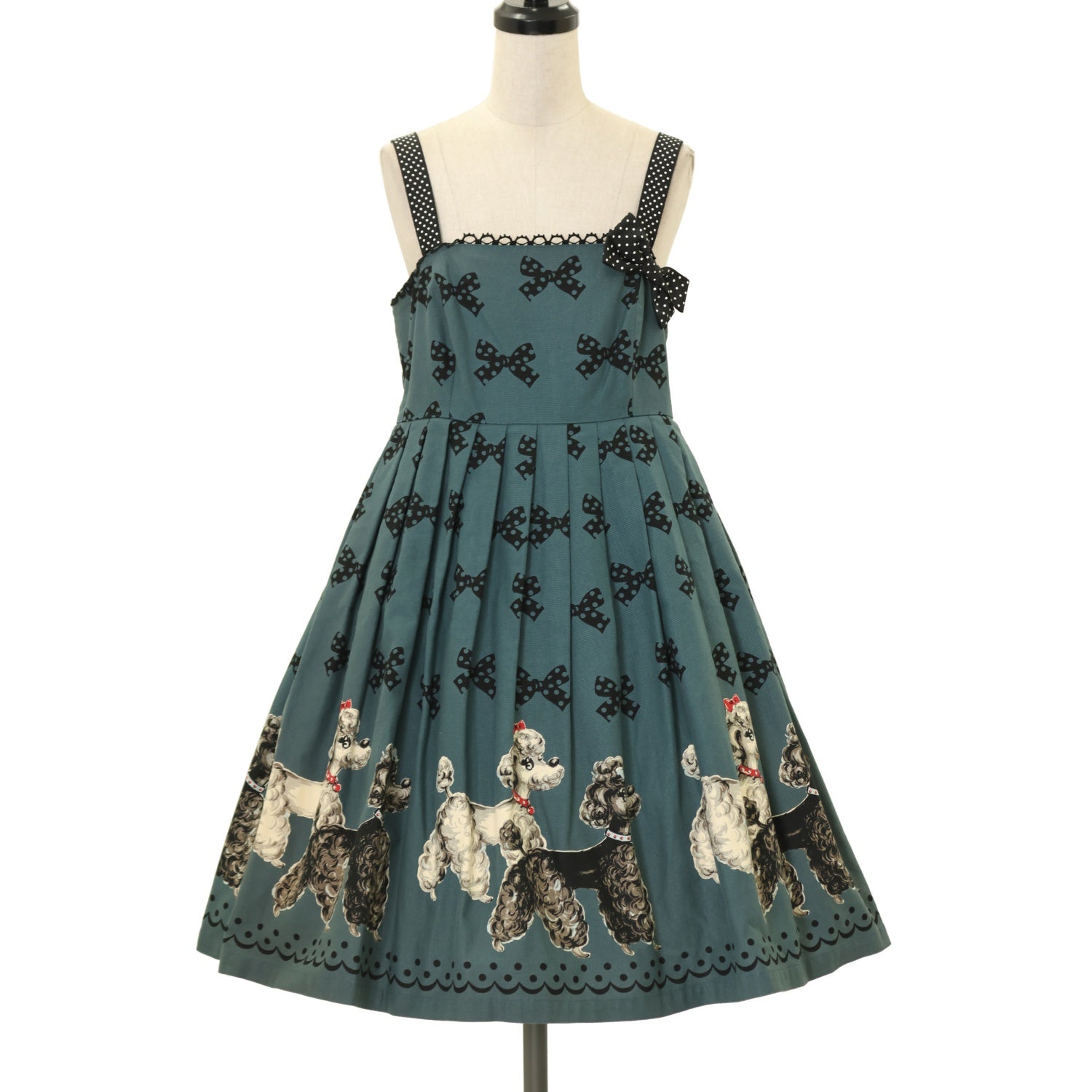 【USED】プードル&リボンプリント ハイウエストジャンパースカート