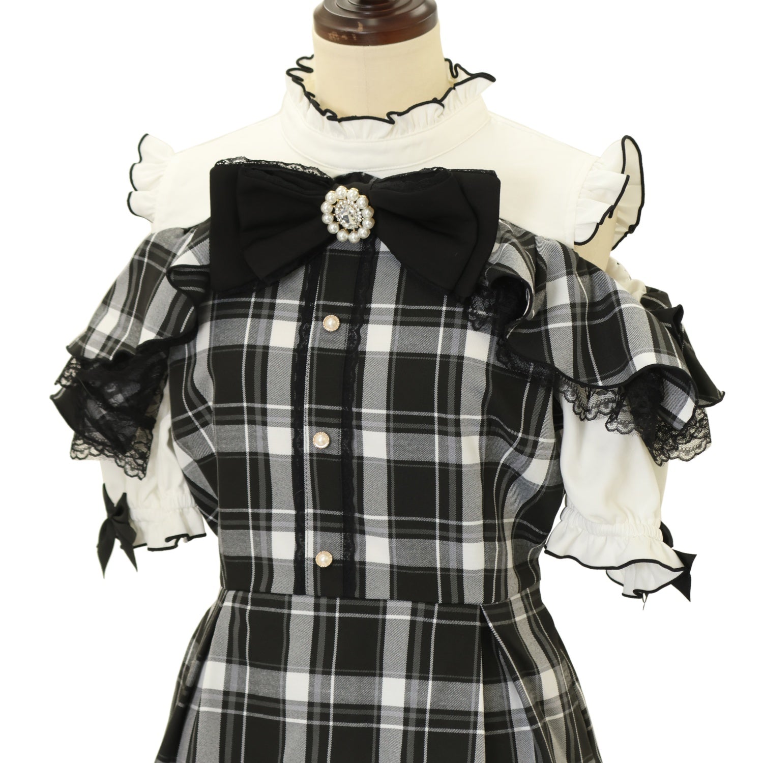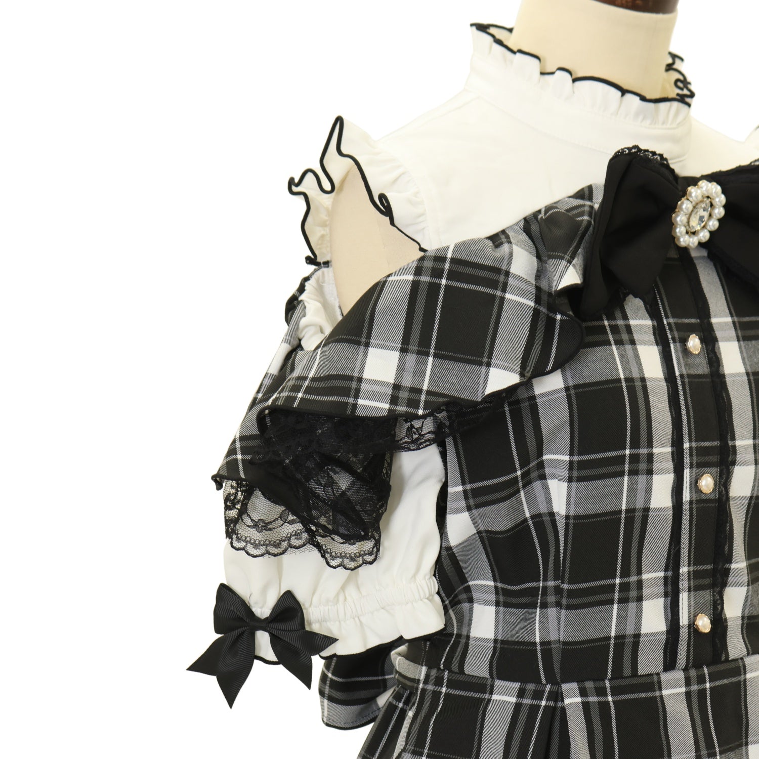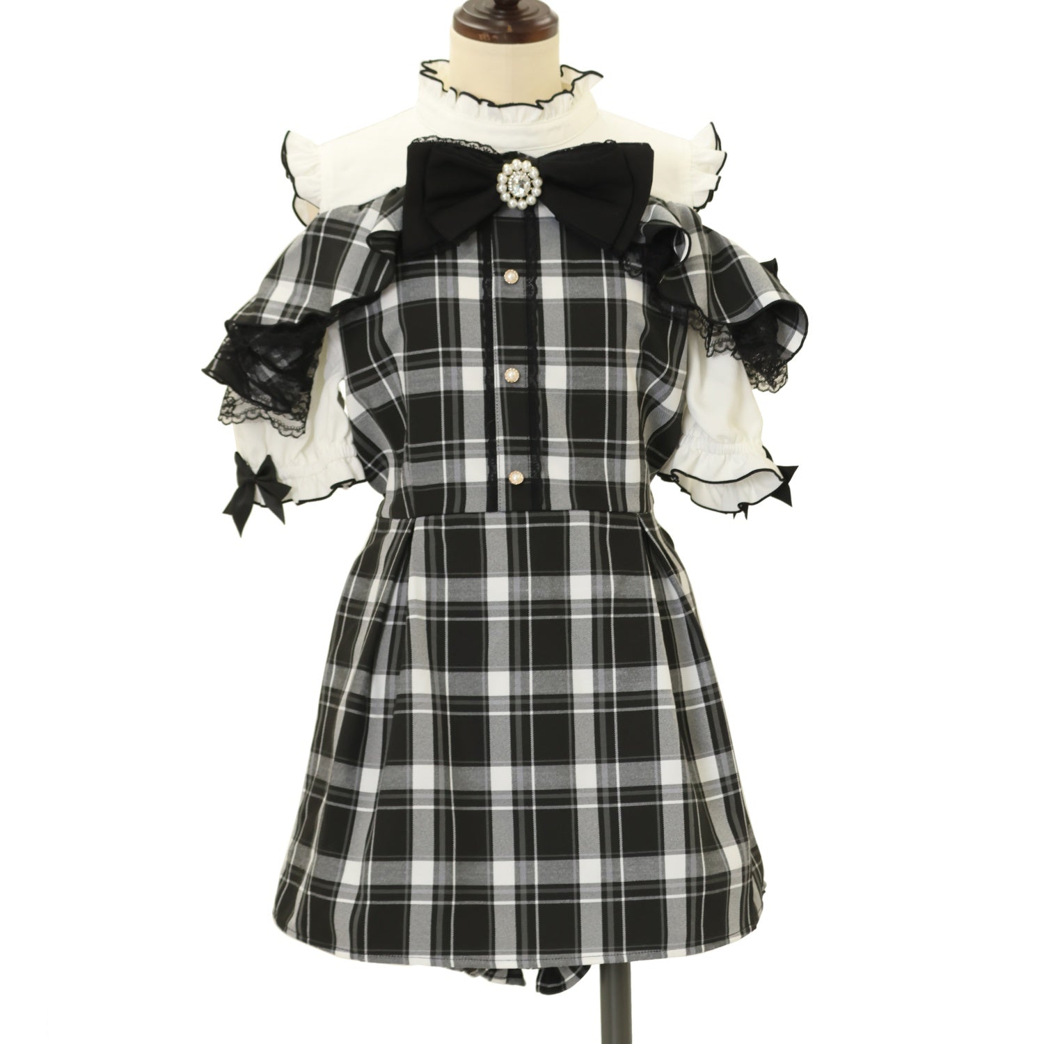 【USED】MA*RS × もえにゃ 半袖肩開きビジューリボンフリルセットアップ