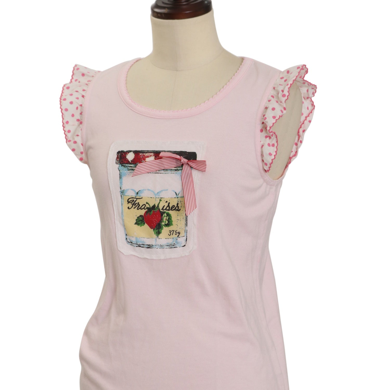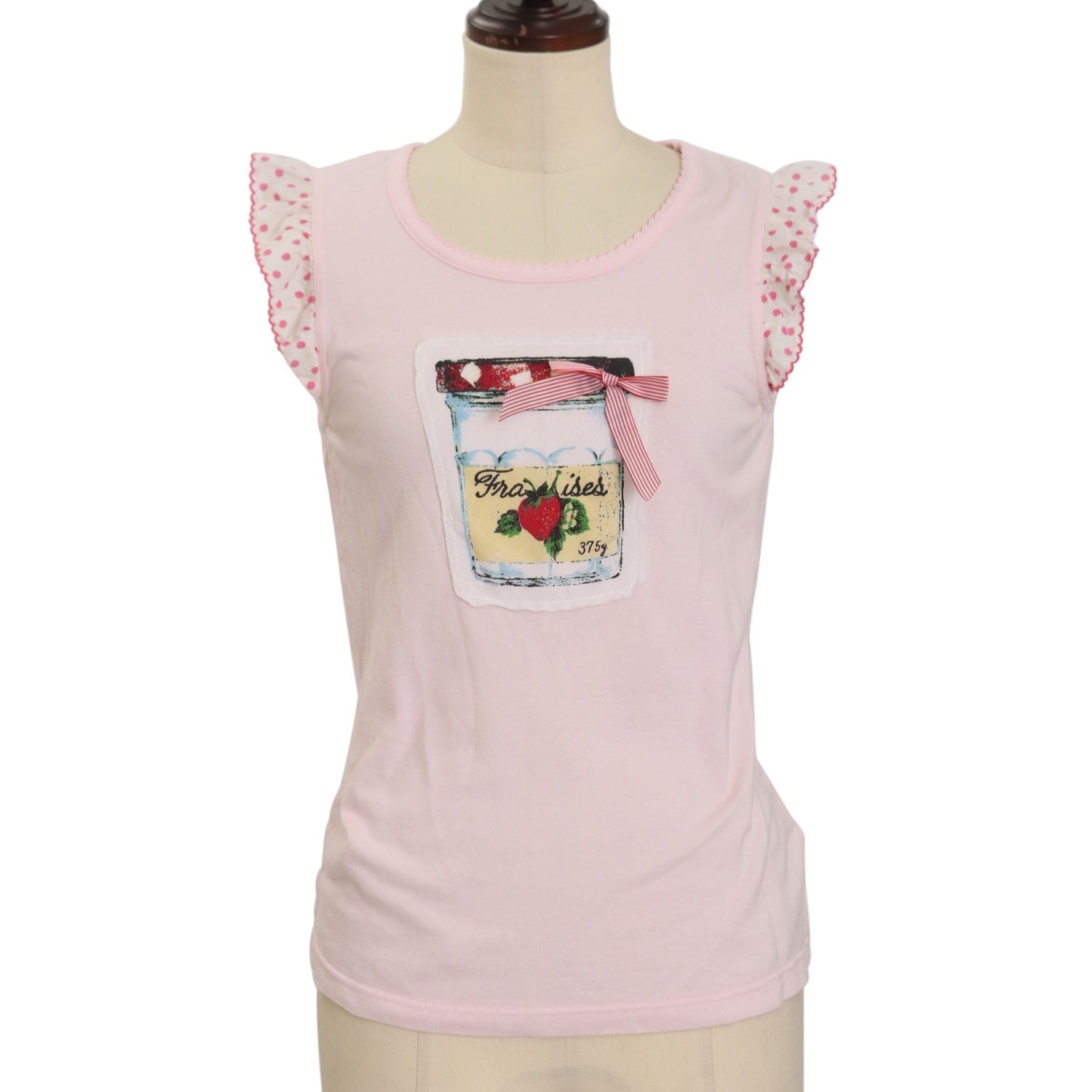 【USED】ジャム瓶ワッペンノースリーブトップス
