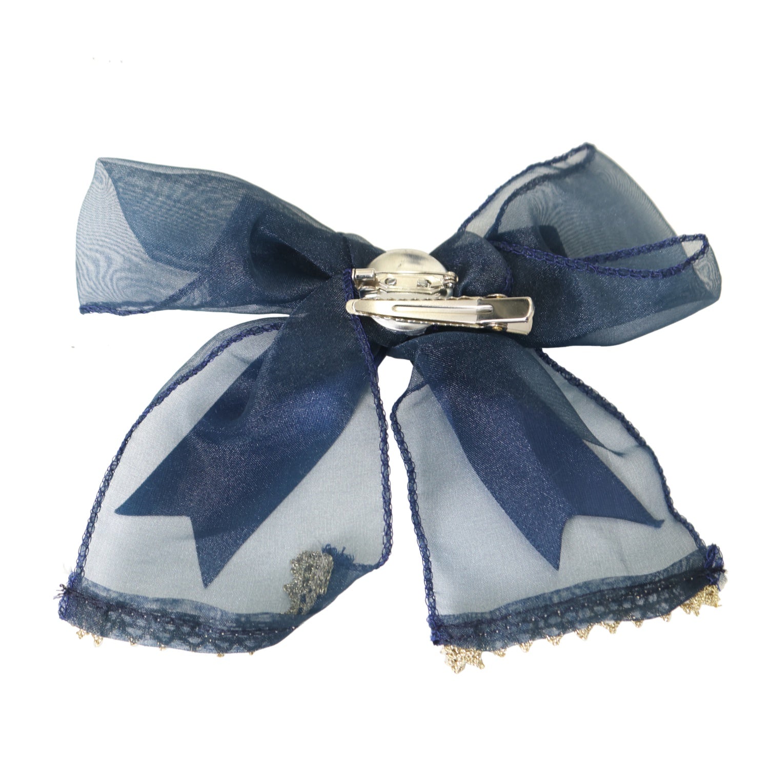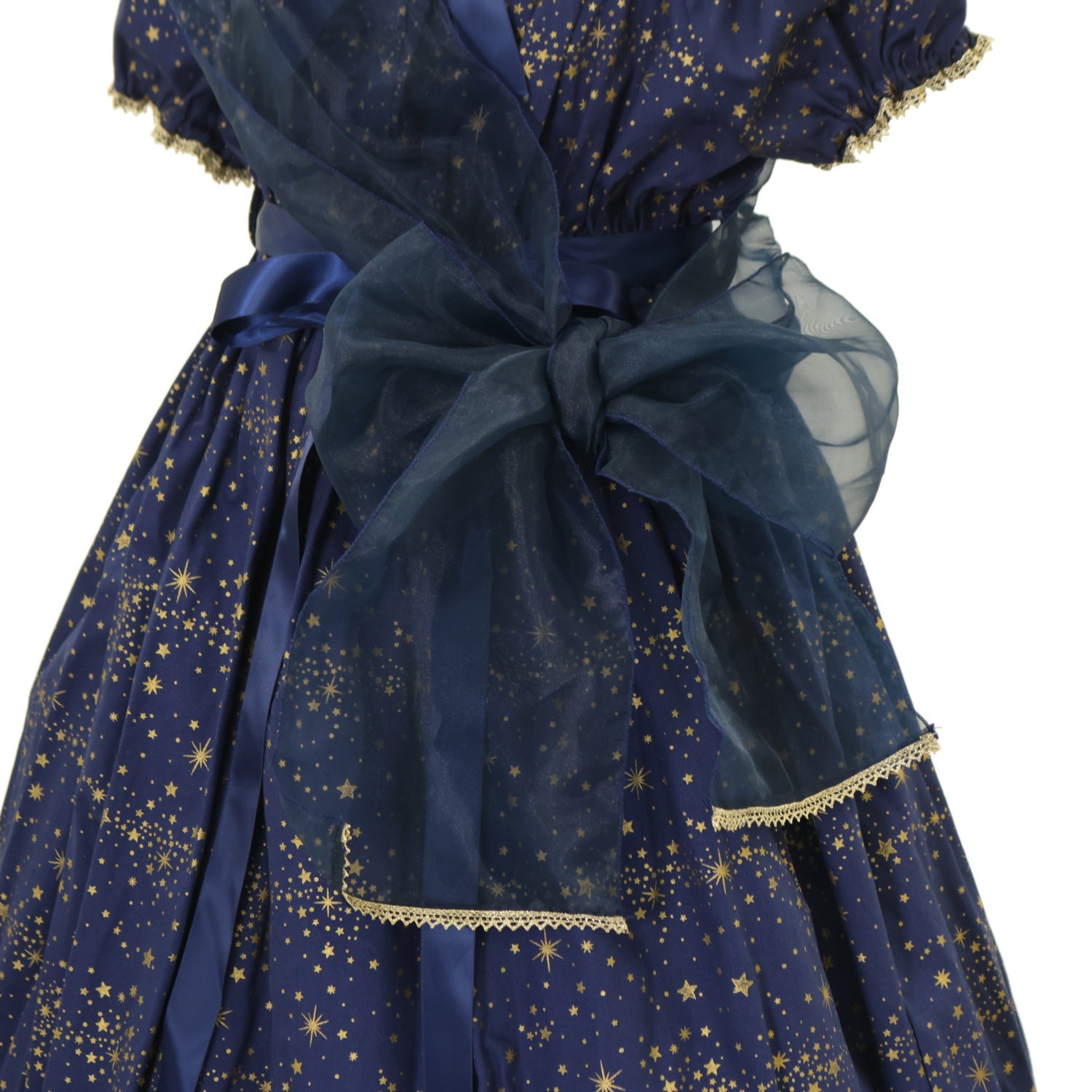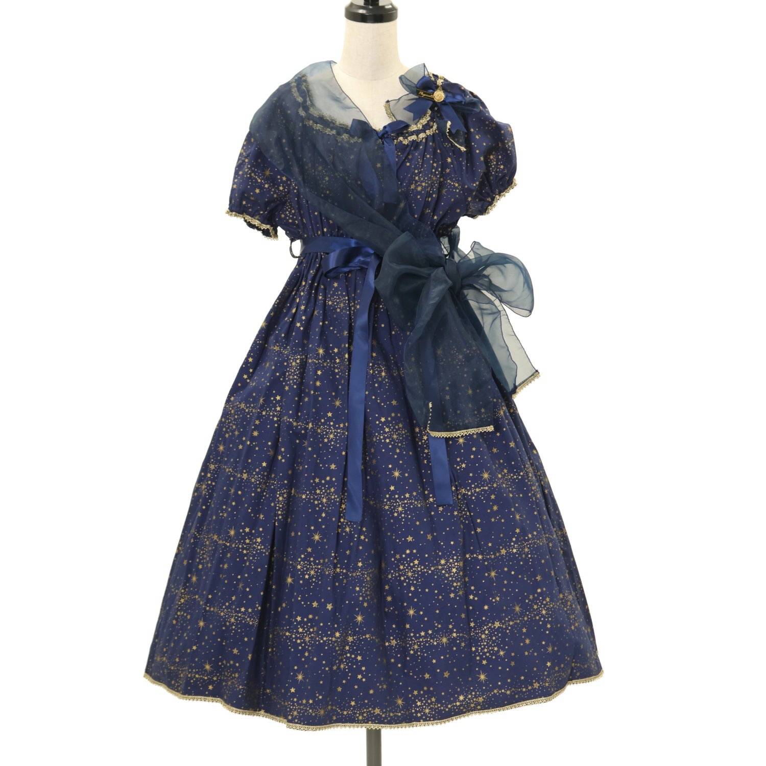 【USED】サッシュリボン付★星空★シャーリングワンピース【紺×ゴールドレース105c丈】