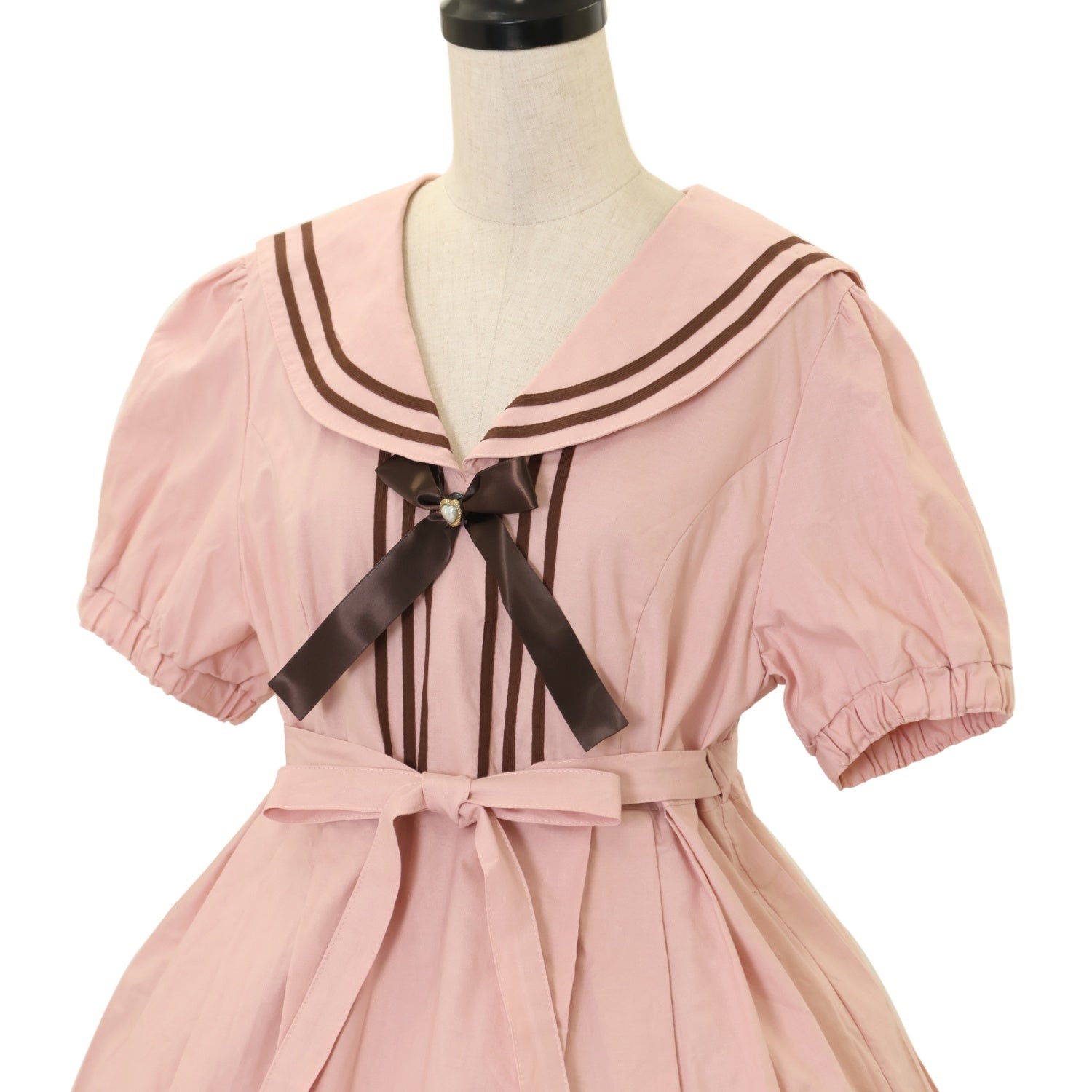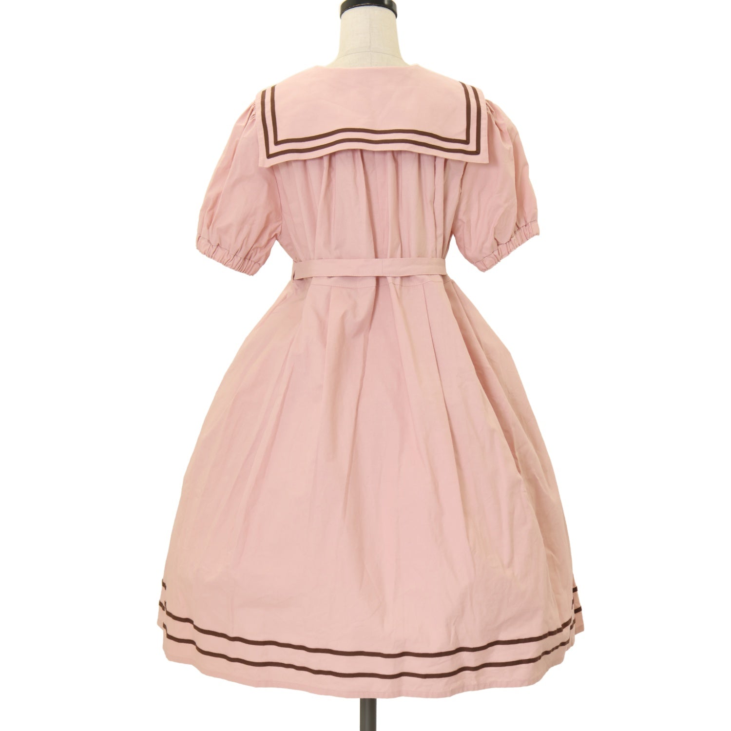 【USED】セーラーチュニックワンピース【ピンク×茶色ライン】