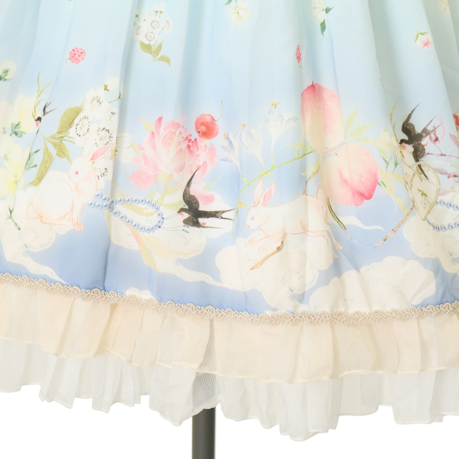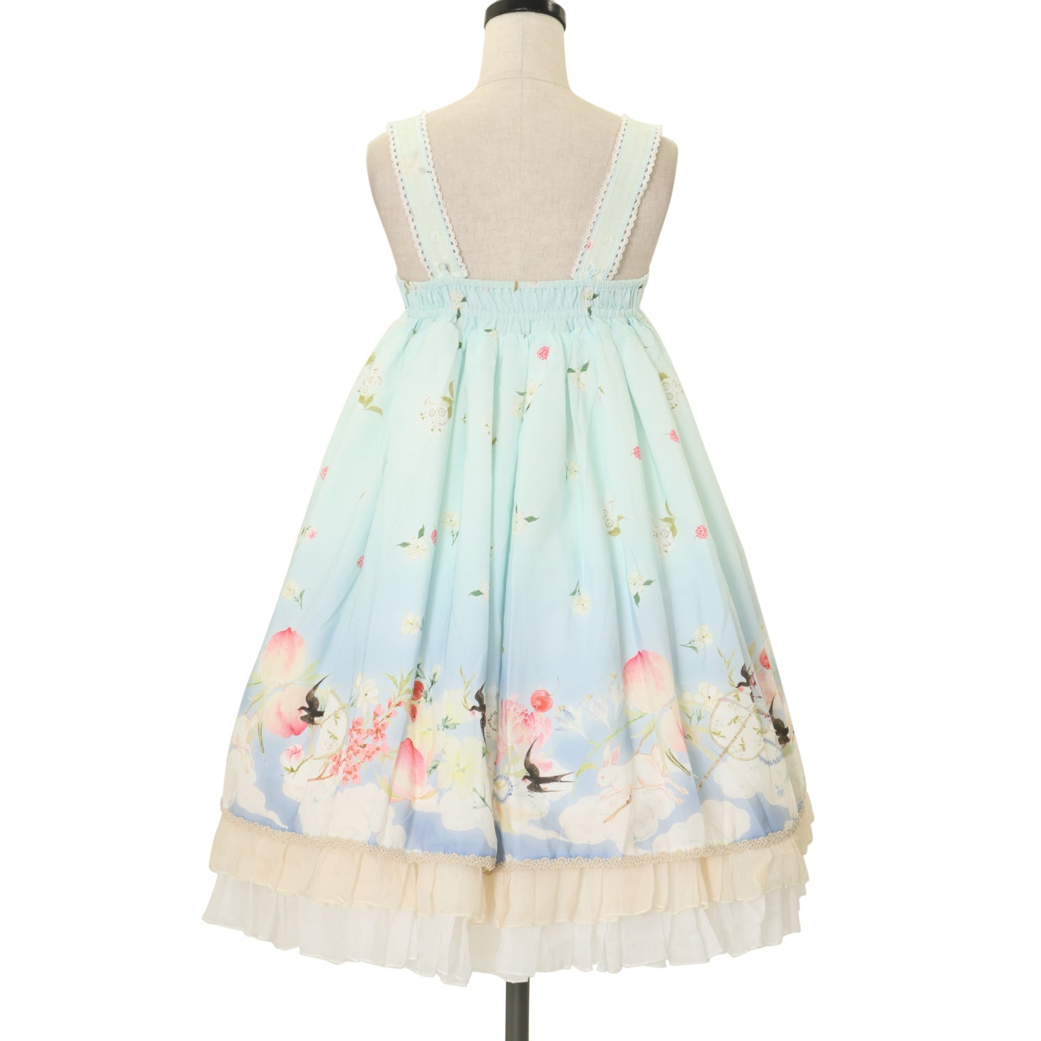 【USED】【crucis/Sサイズ】うさぎ&つばめ柄ハイウエストジャンパースカート