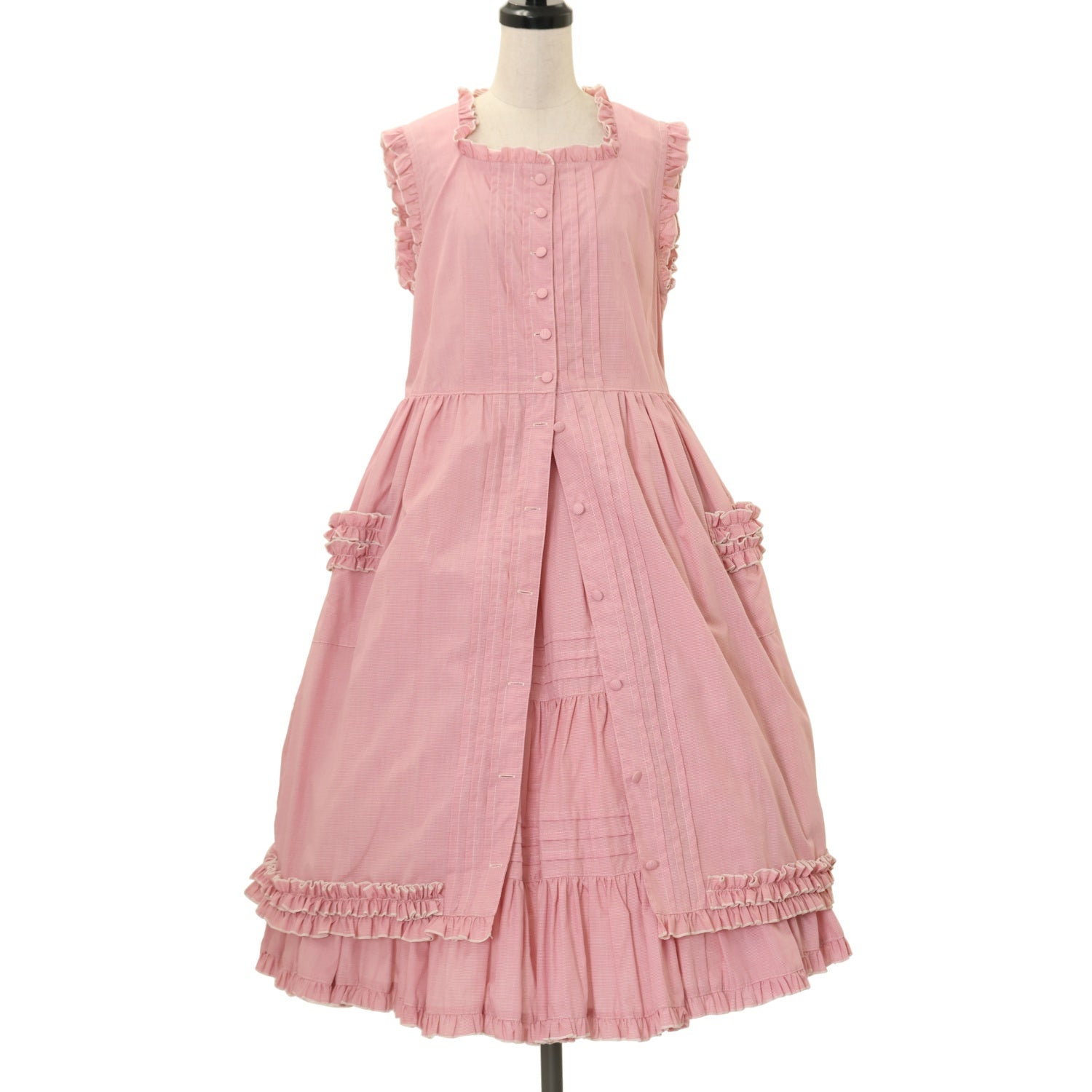 【USED】ペチコート付エプロンJSK【赤ギンガム】