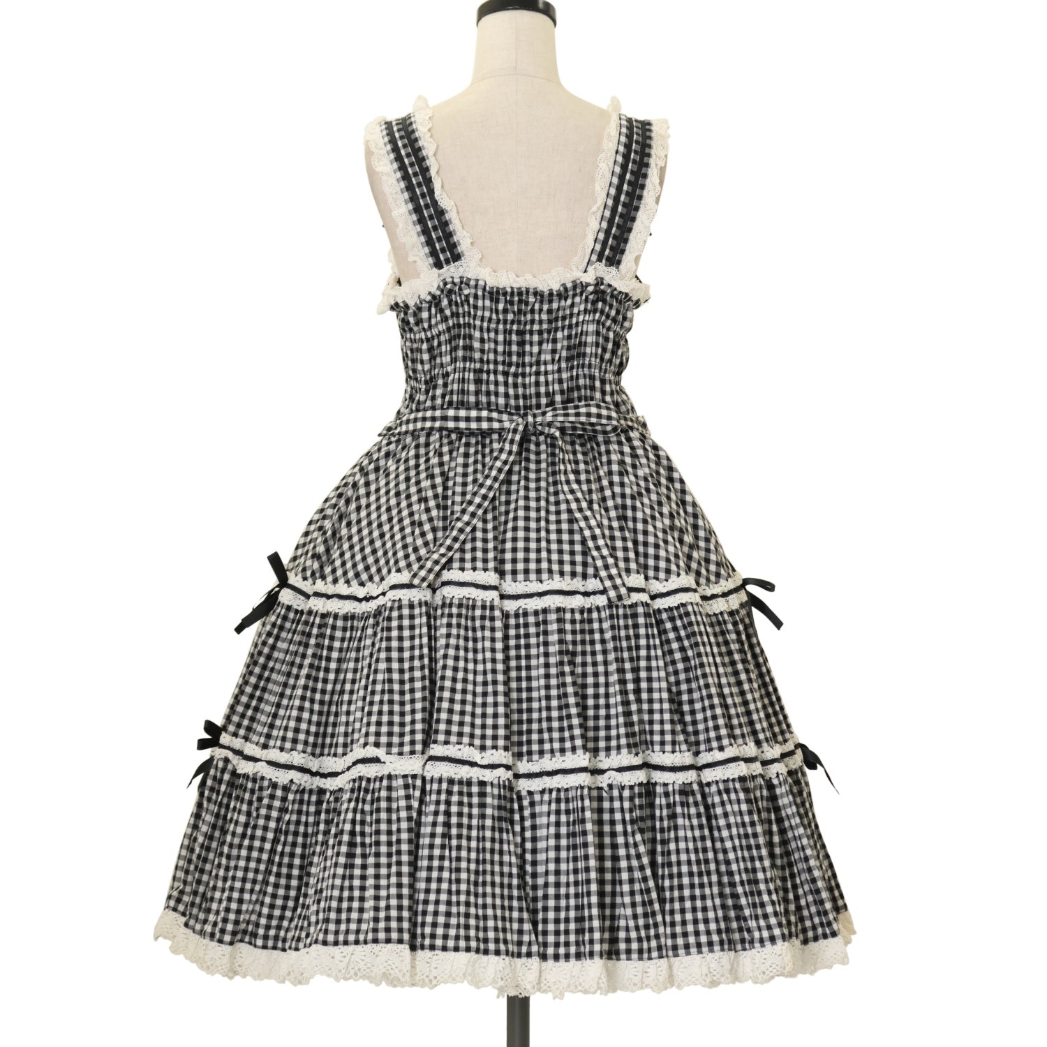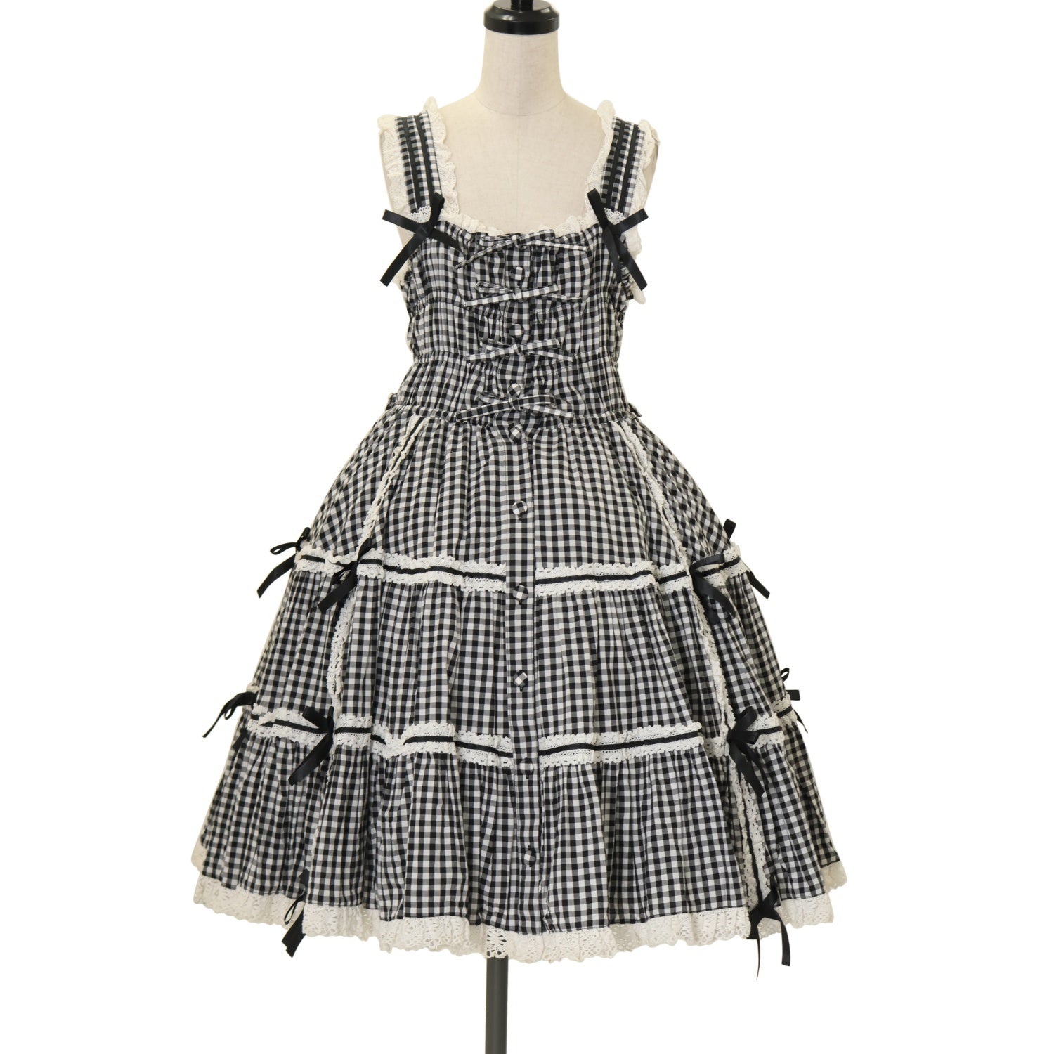 【USED】シャーリングティアードジャンパースカート(ギンガム)