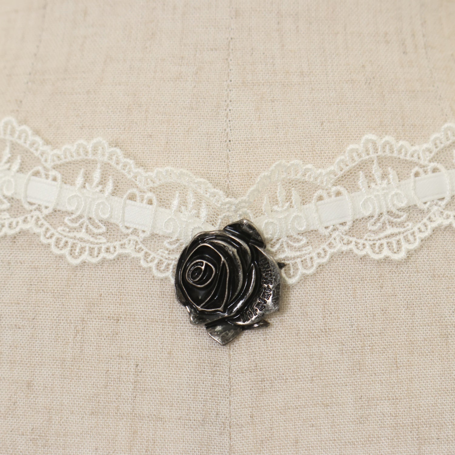 【USED】ローズチャーム燭台レース飾り(off-white x off-white x silver)