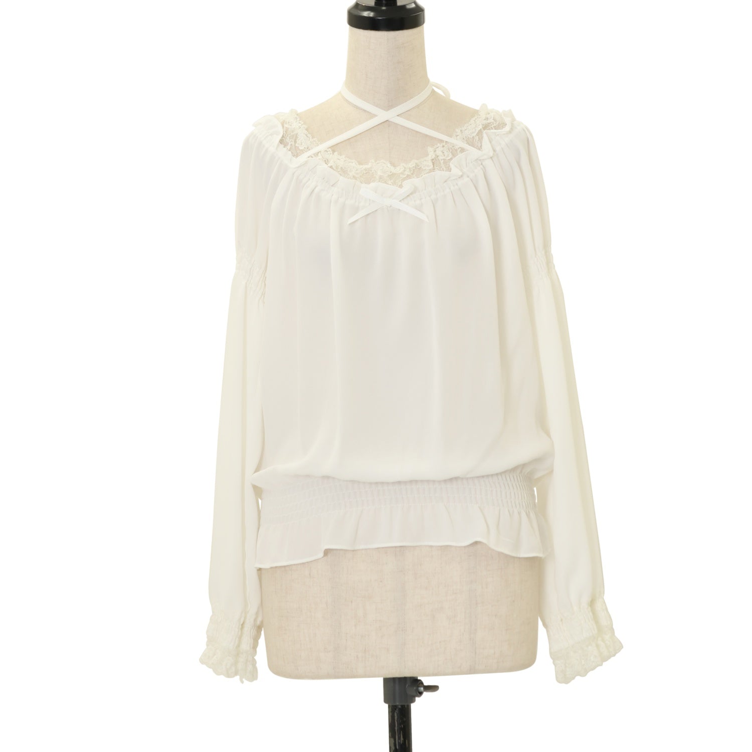 【USED】【サイズ2】オフショルクロスリボンブラウス