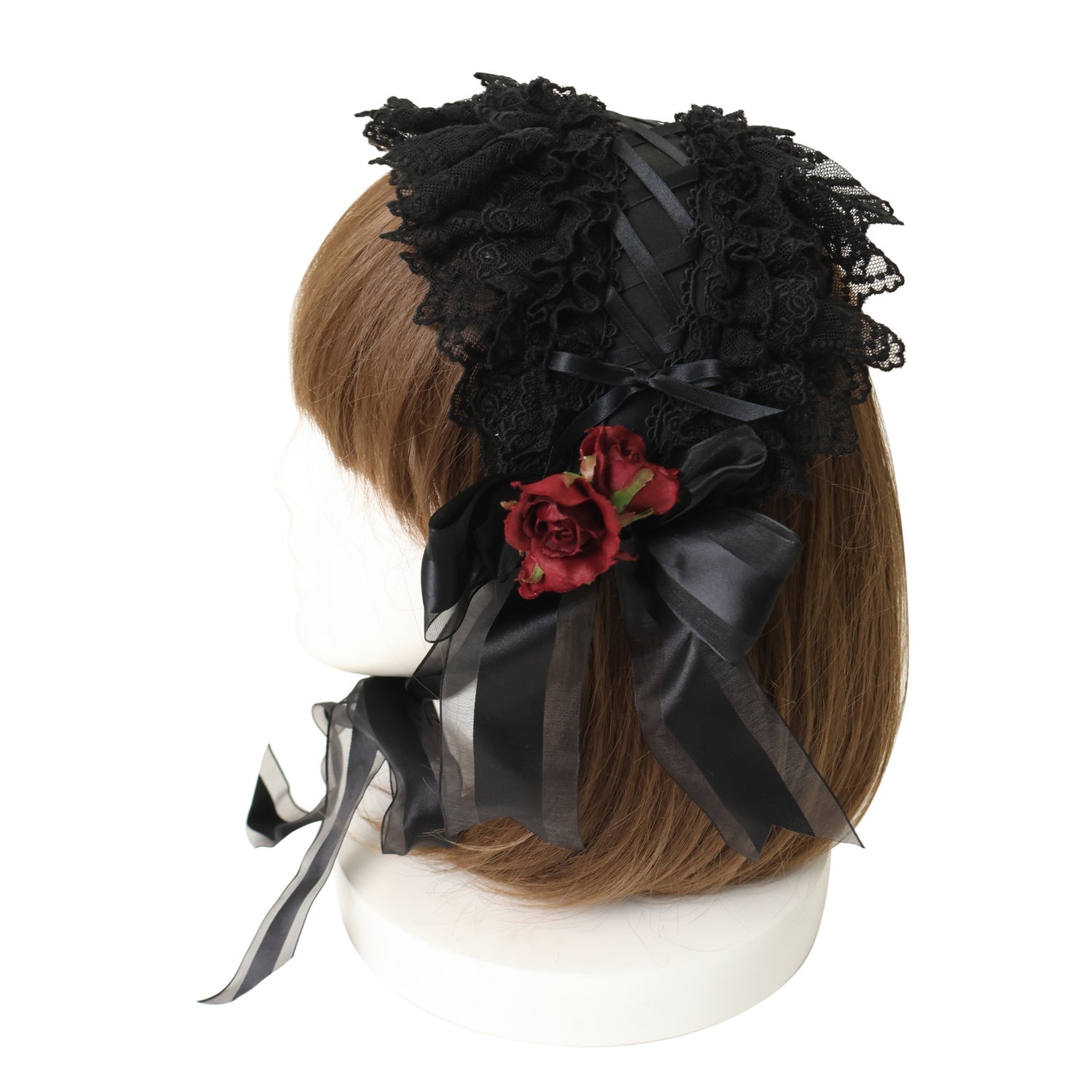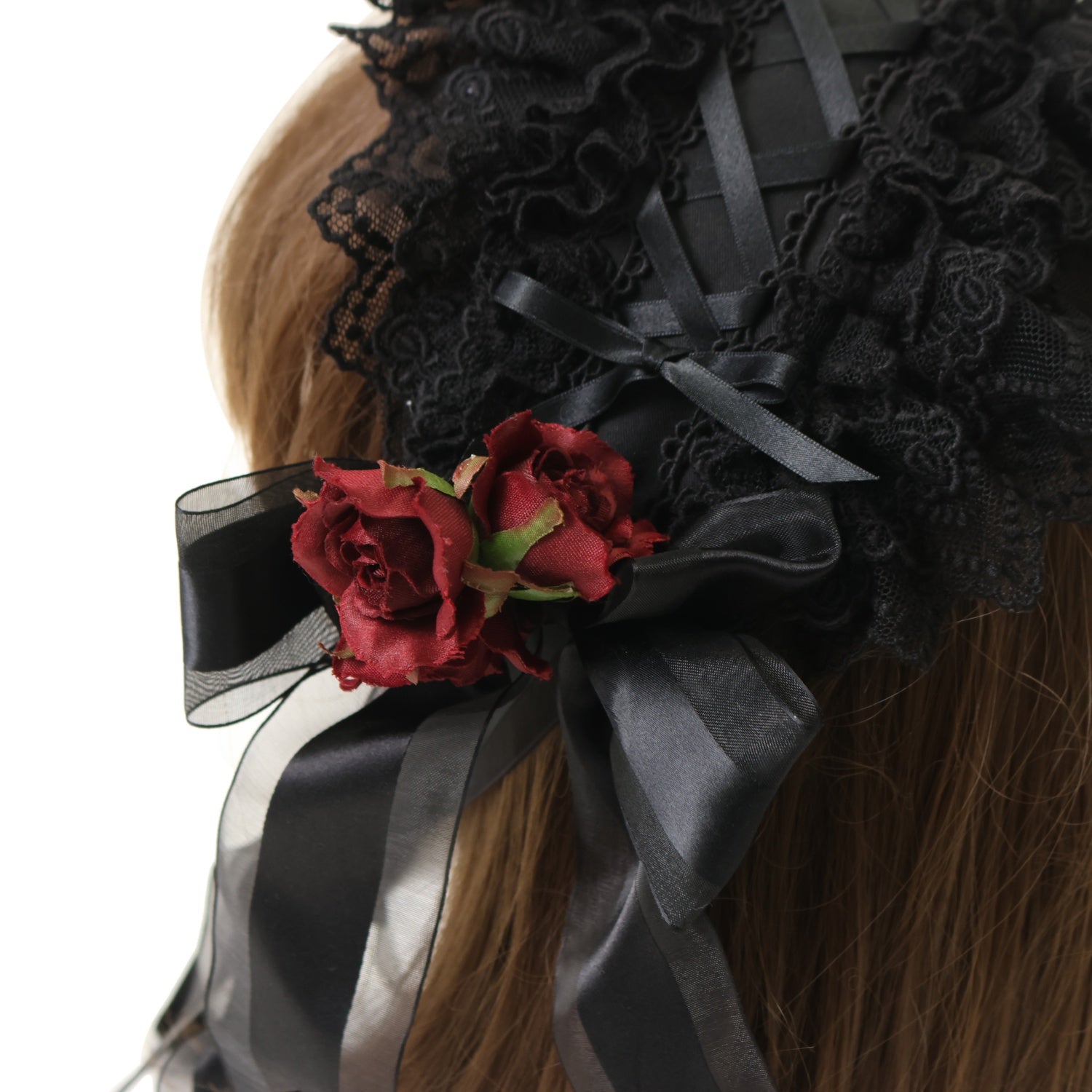 【USED】エアリーローズヘッドドレス(ブラック×ボルドー)