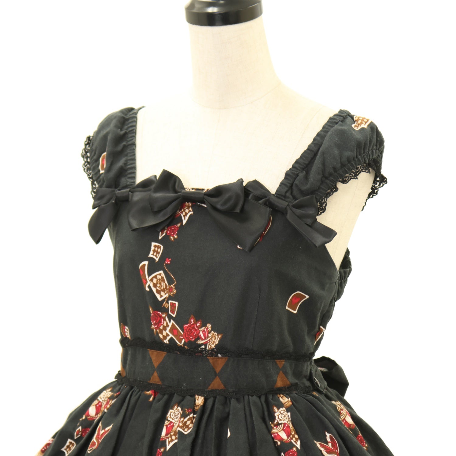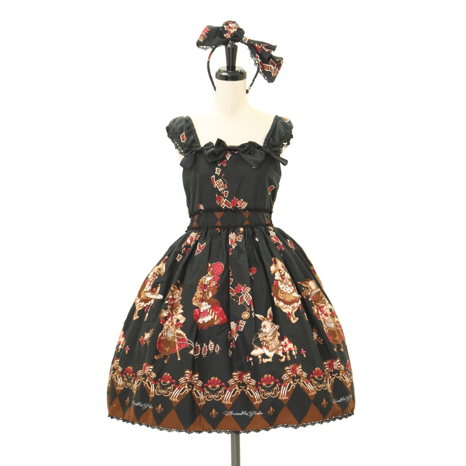 【USED】ワンダーラビットのマジカルトランプティーパーティ柄ジャンパースカート+リボンカチューシャセット