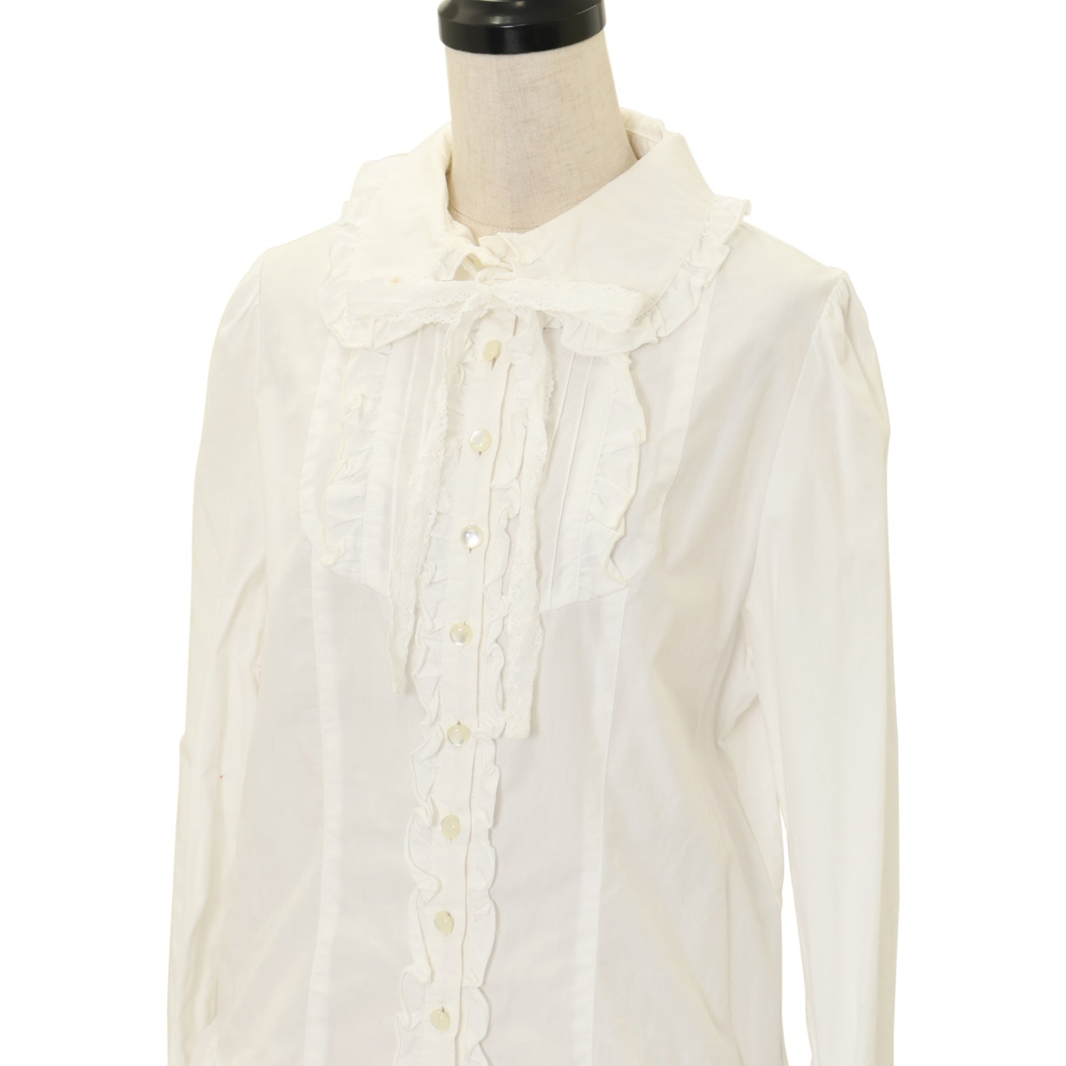 | Product status | 使用感あり ボタン縫い付け糸に緩み 襟ぐり内側・袖口内側に汚れ リボンタイにシミ シワ |