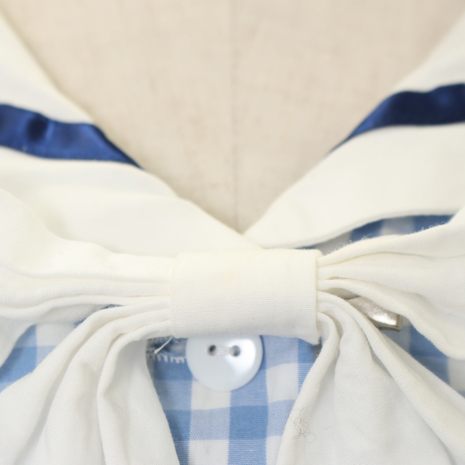 | Product status | 使用感あり 袖フリルにヨレ 襟ぐりに黄ばみ リボンクリップに汚れ |