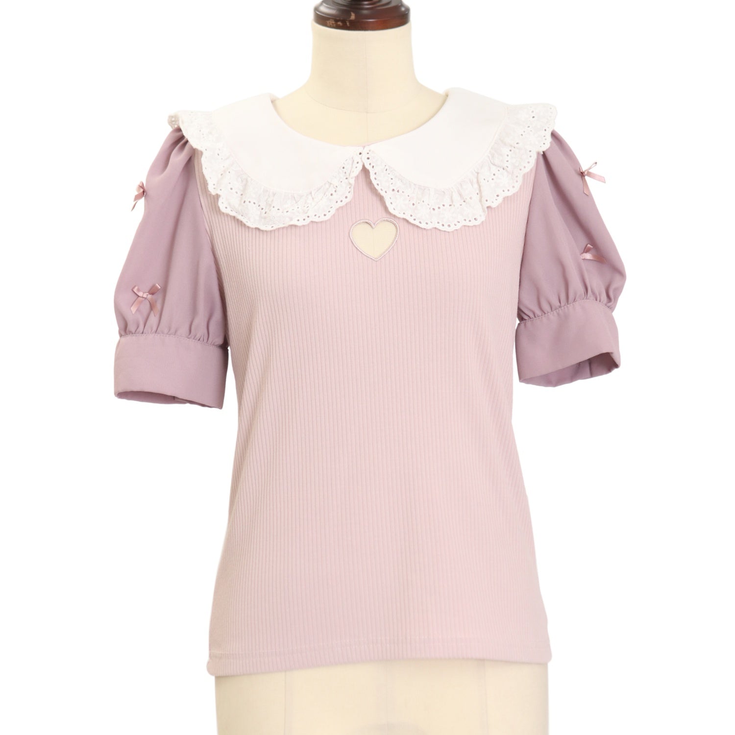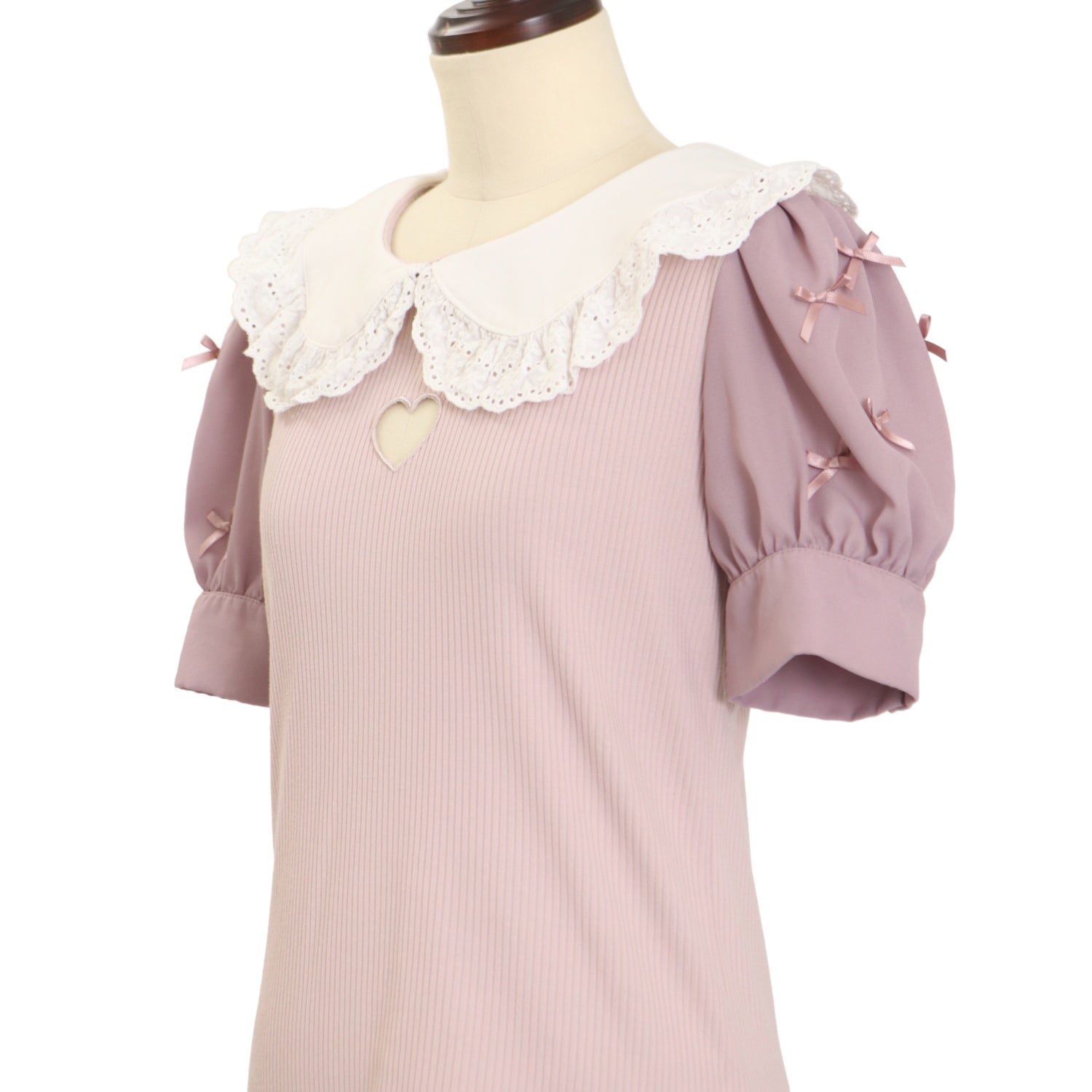 【USED】【Mサイズ】ハートくりぬきリボンパフTOPS