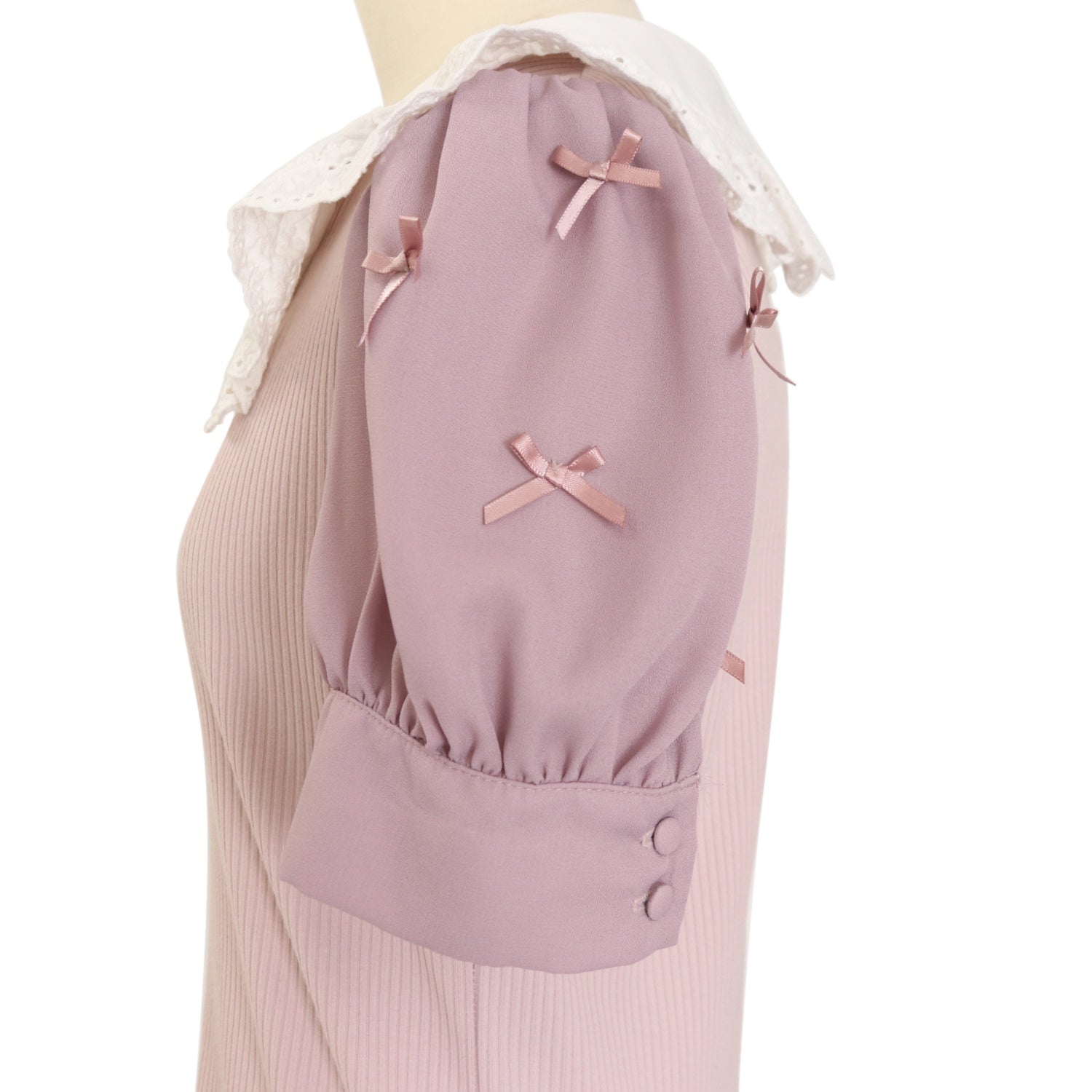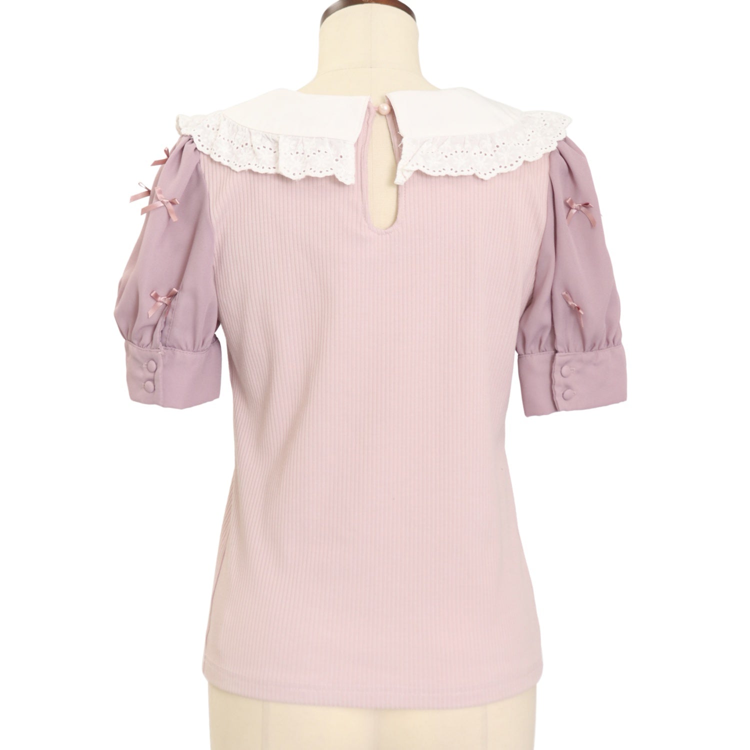 | Product status | 使用感あり 襟レースにヨレ・首元付近にピンク色の汚れ 糸飛び出し 後ろ襟ぐり内側に黄ばみ |