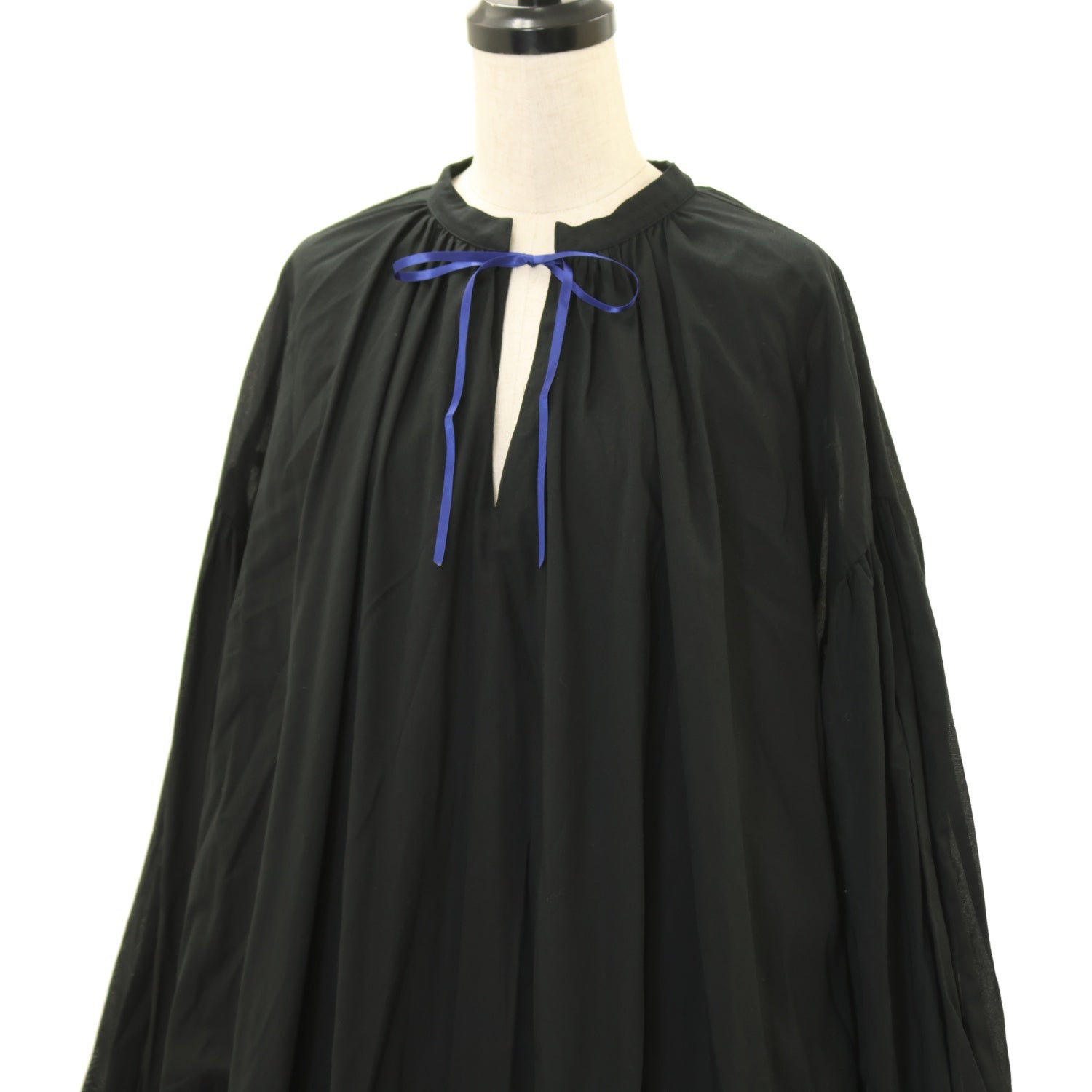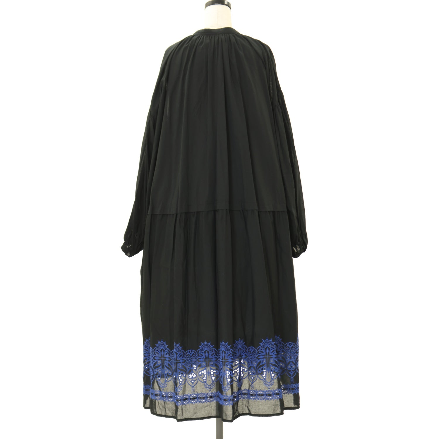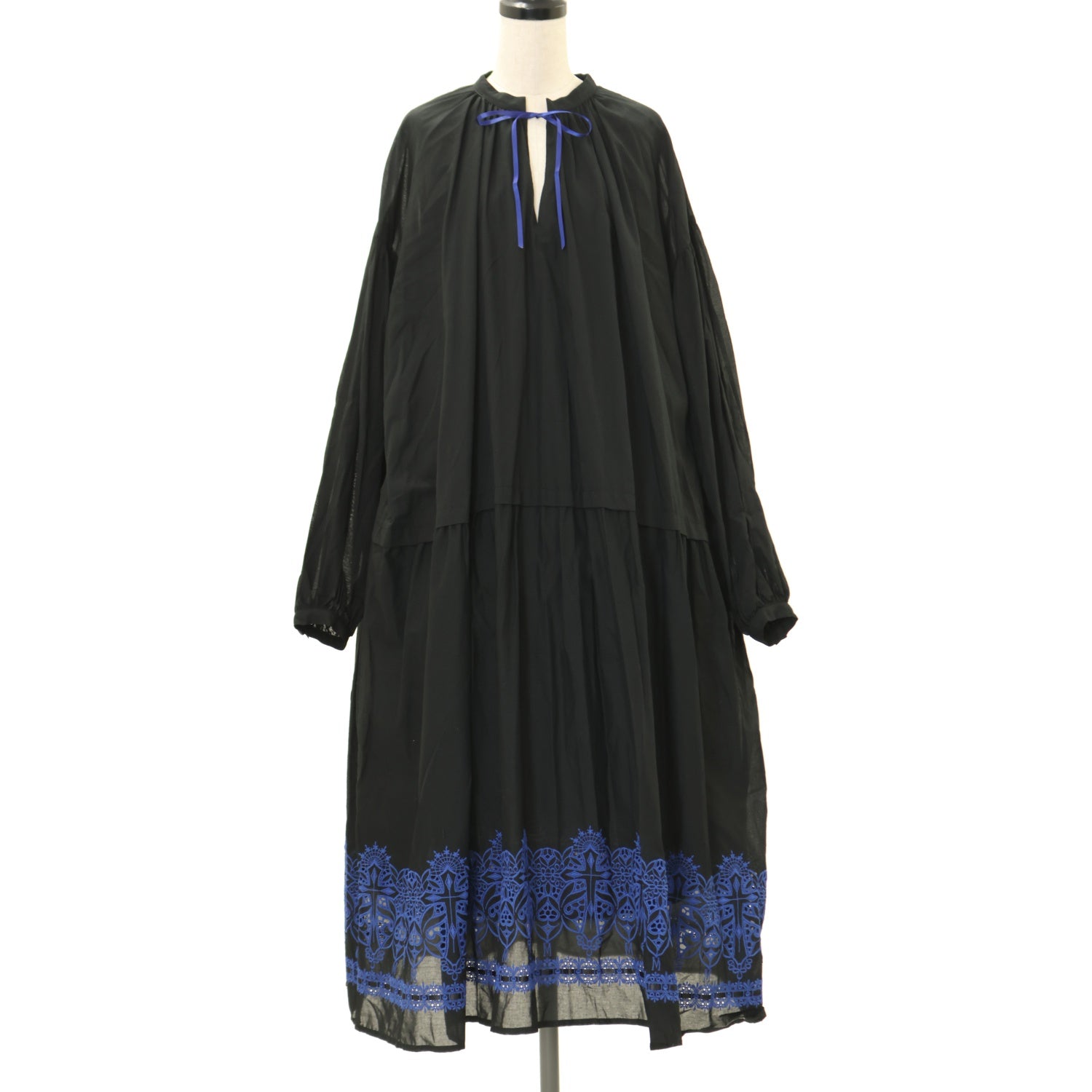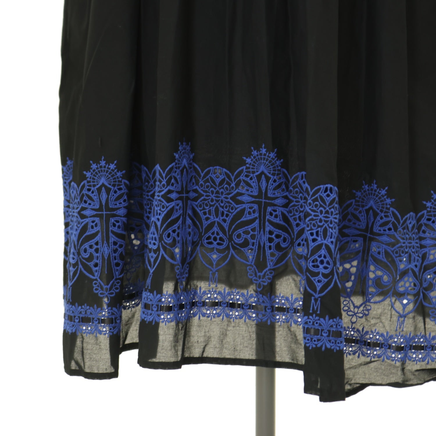 【USED】クロスクラウン刺繍チャーチスモック風ワンピース(黒×青)