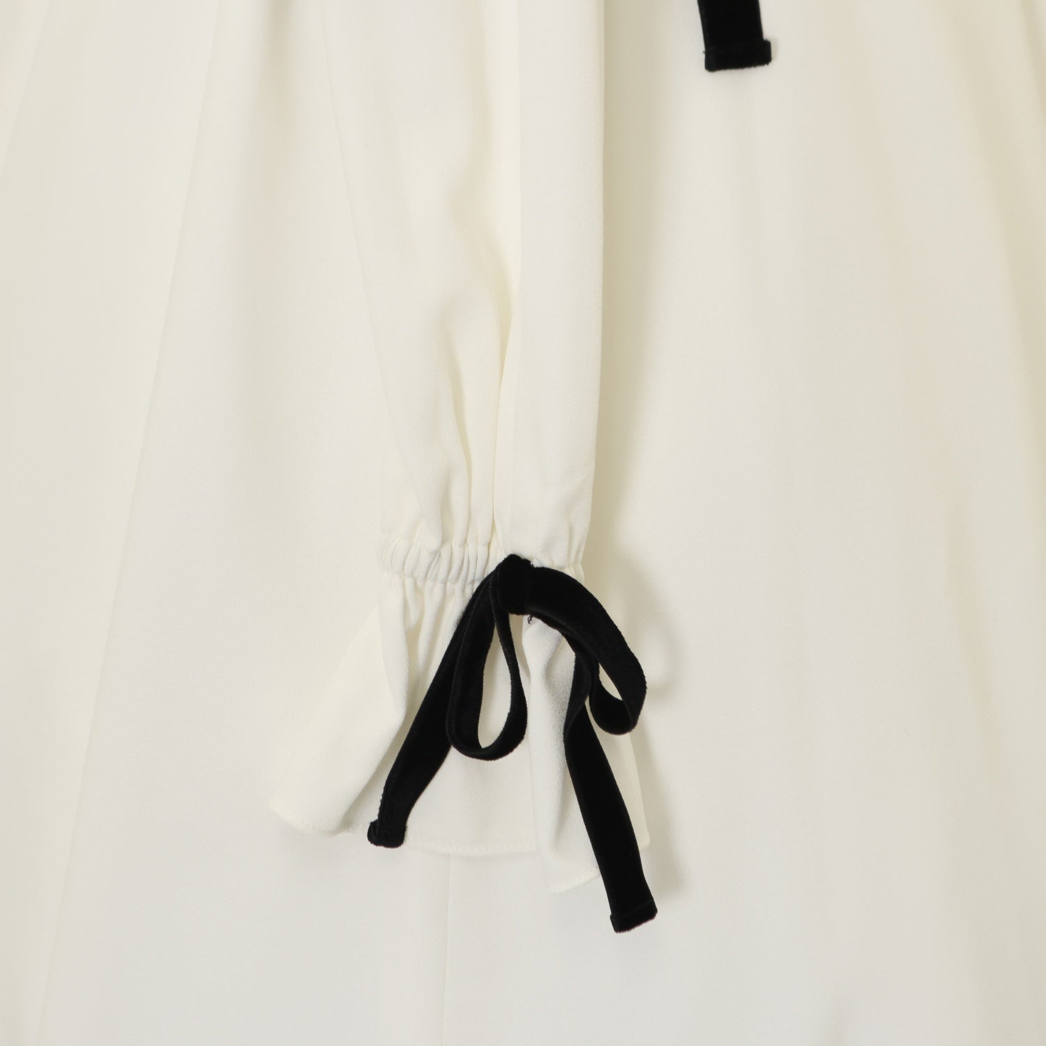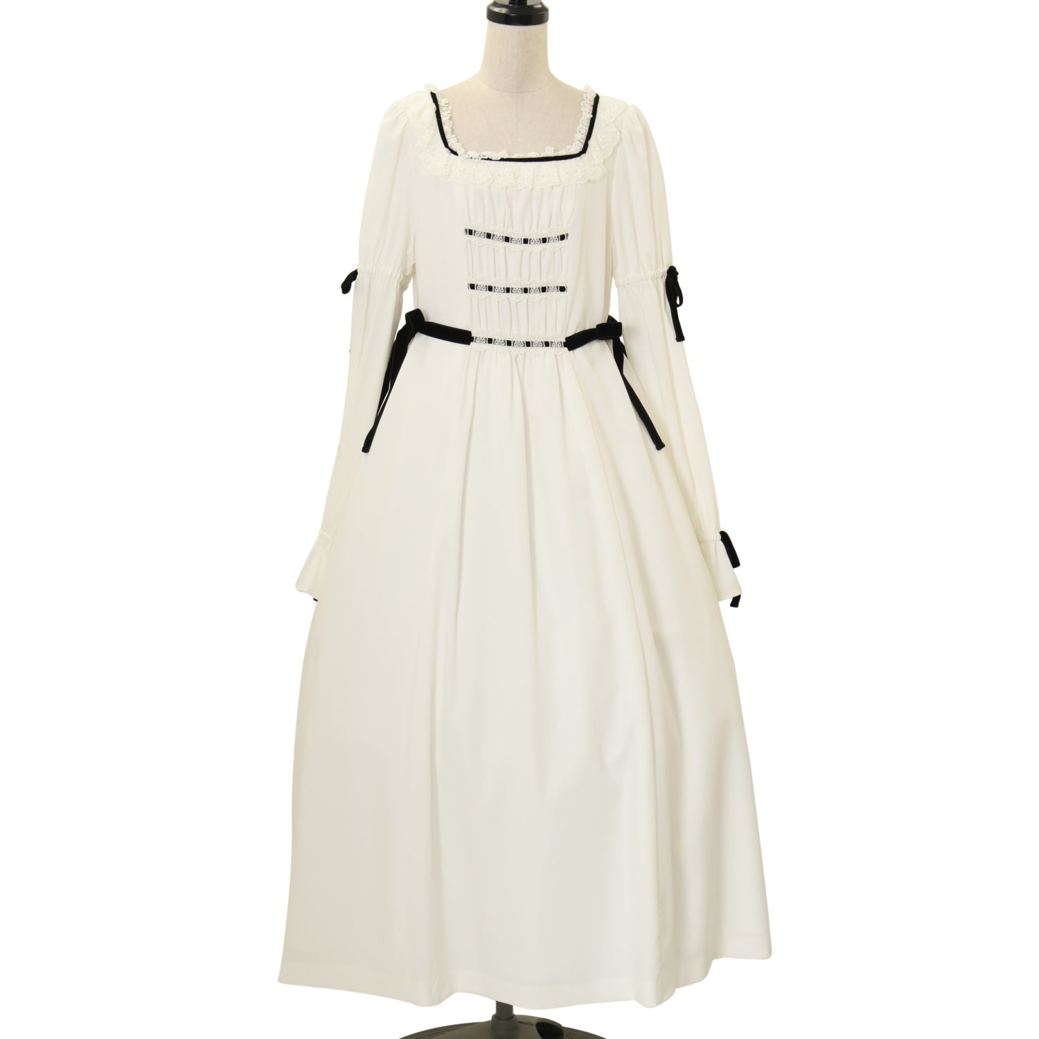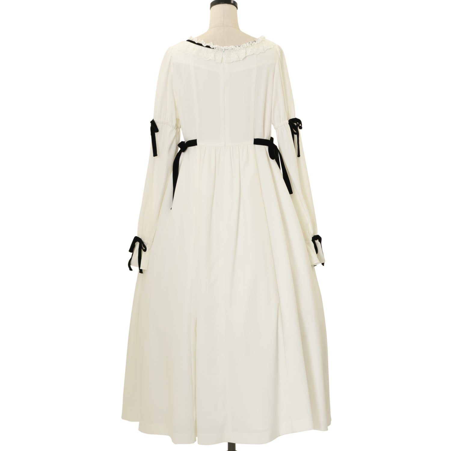 【USED】別珍リボンロングワンピース(白×黒リボン)