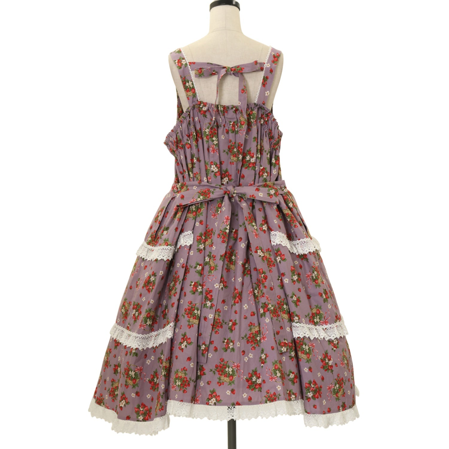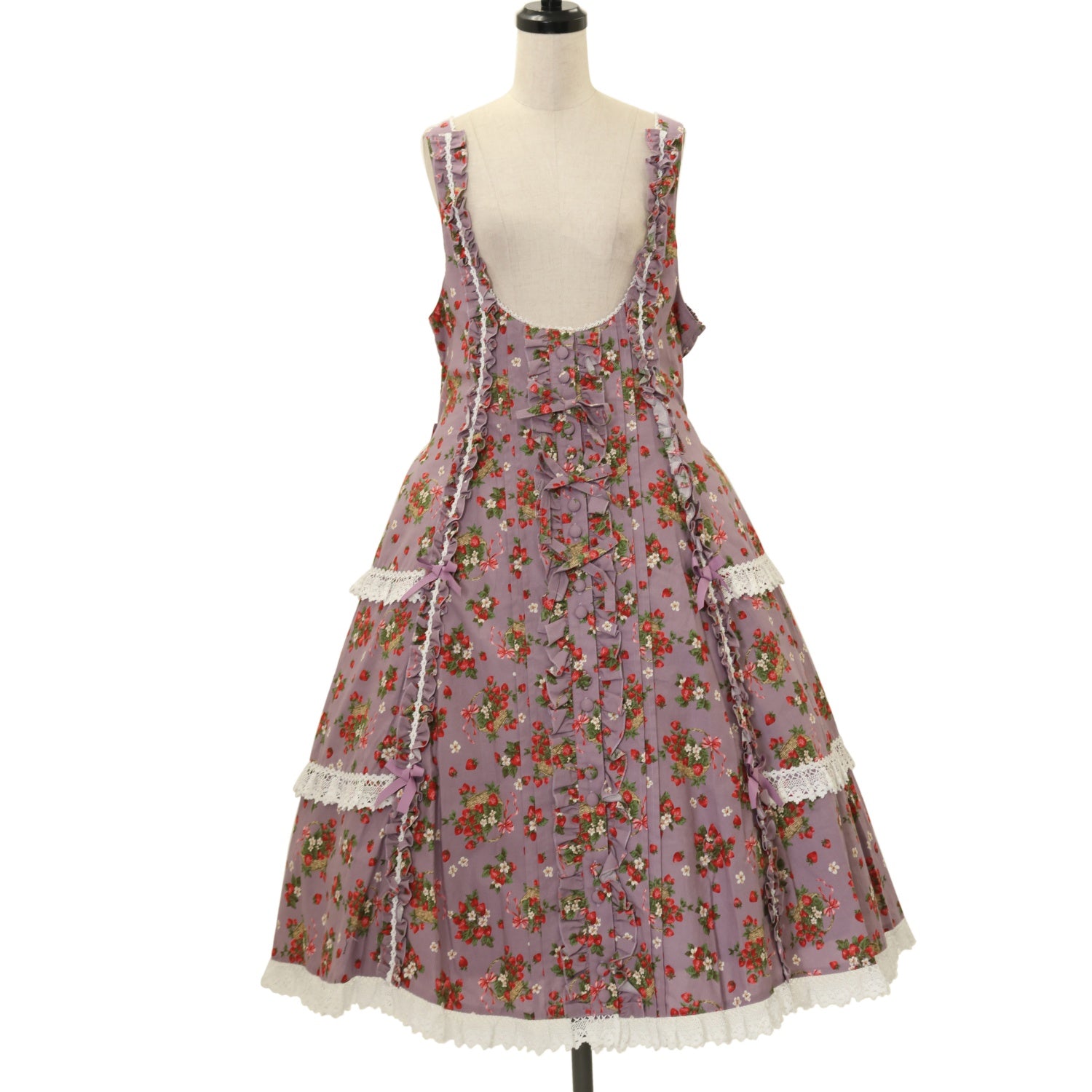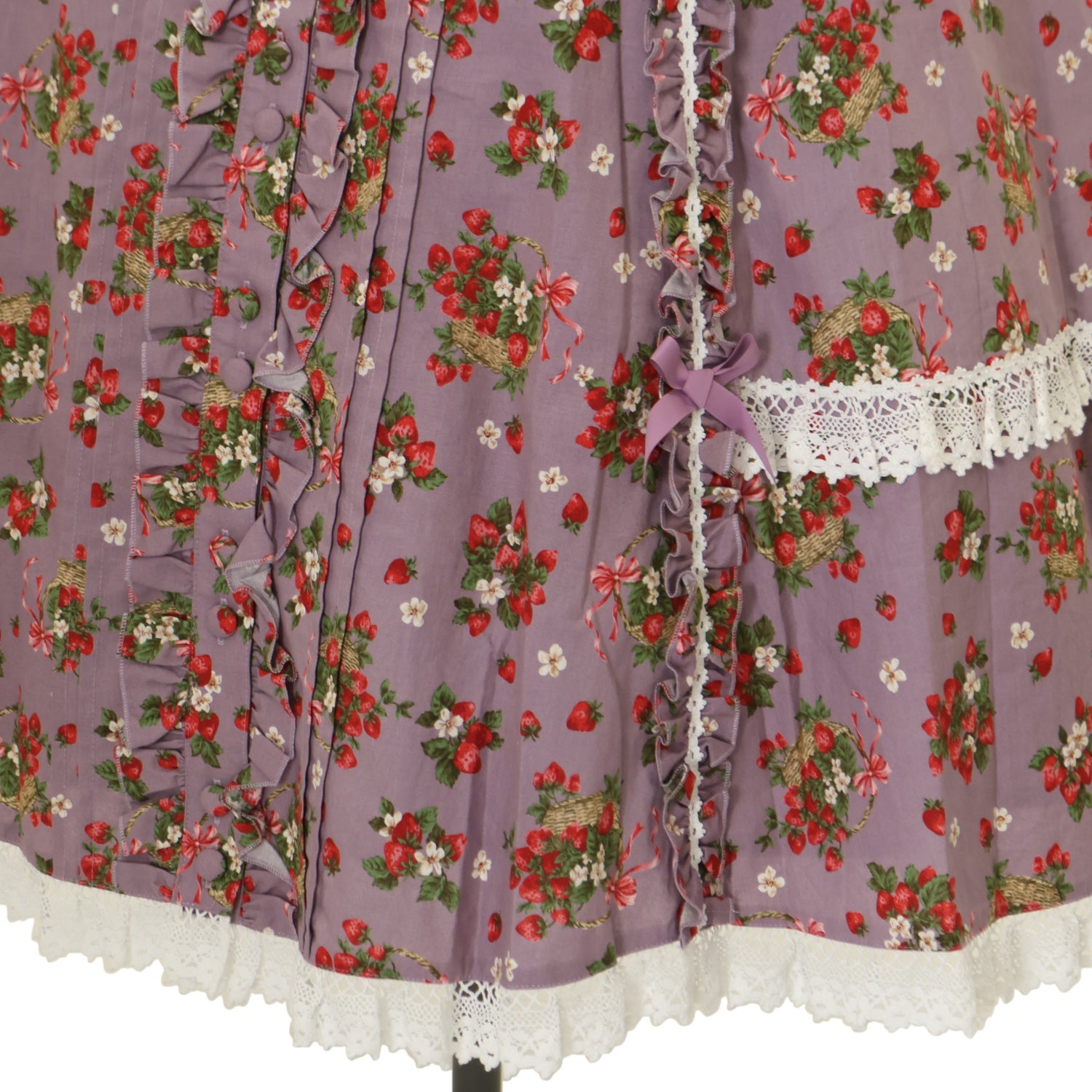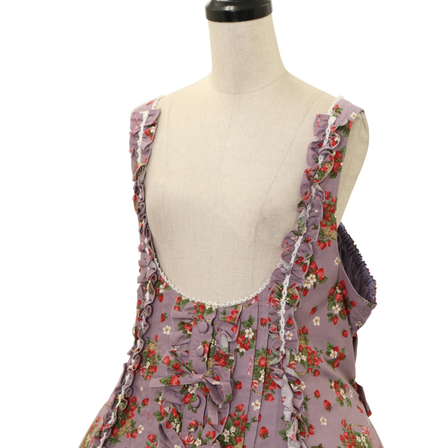 【USED】【プラスサイズ】Strawberry Basket フロントボタンリボンジャンパースカート