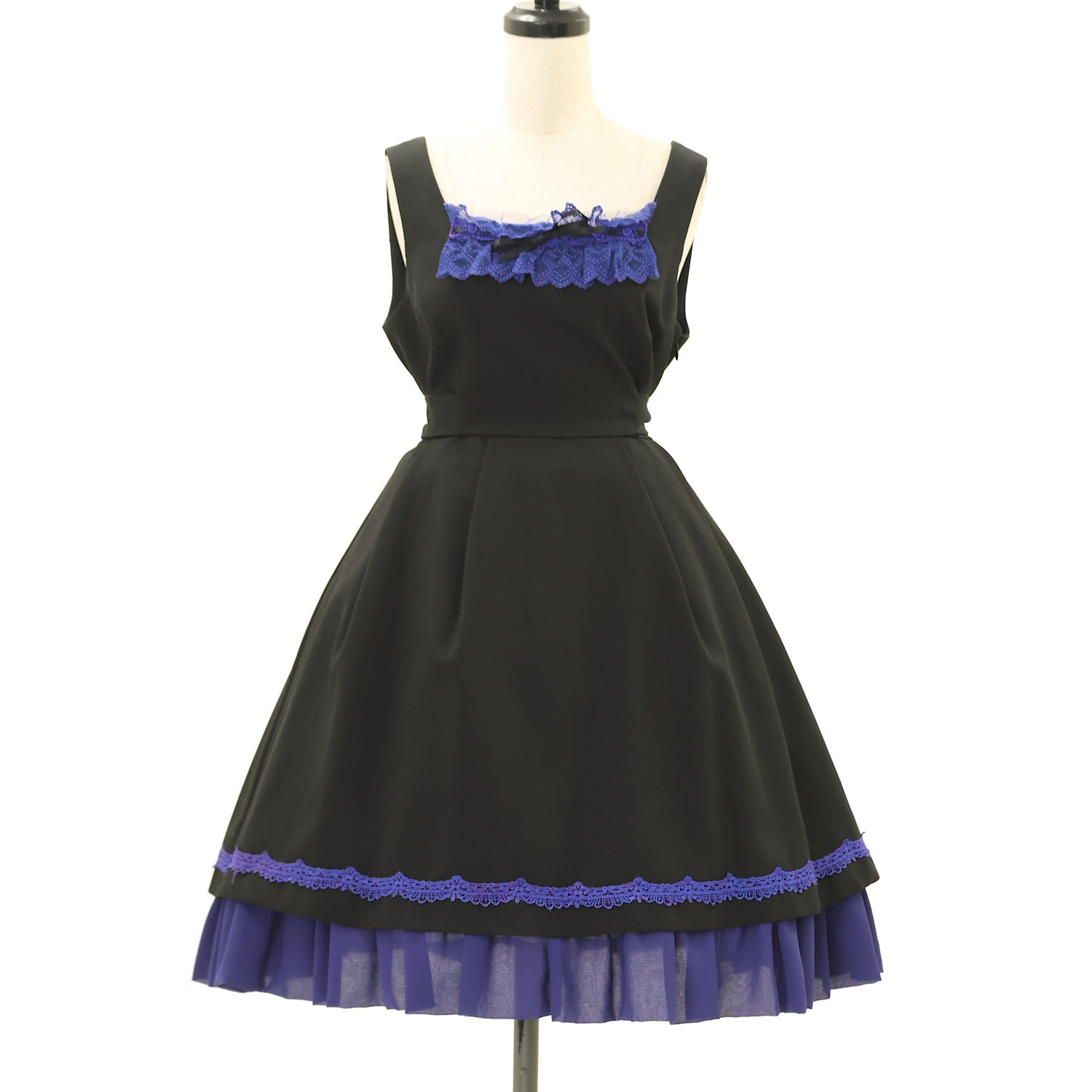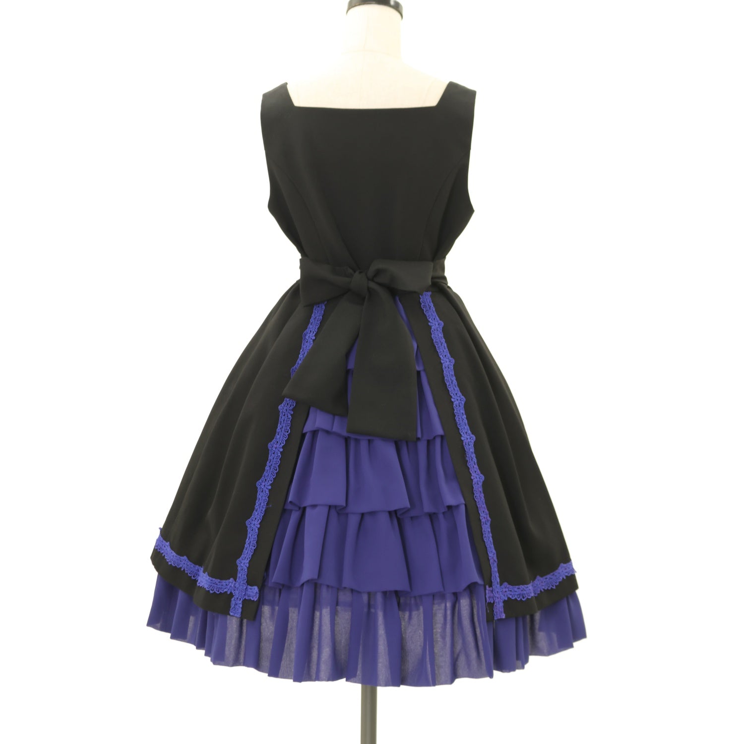 【USED】【サイズ2】シフォンバッスルジャンパースカート(Black × Blue)