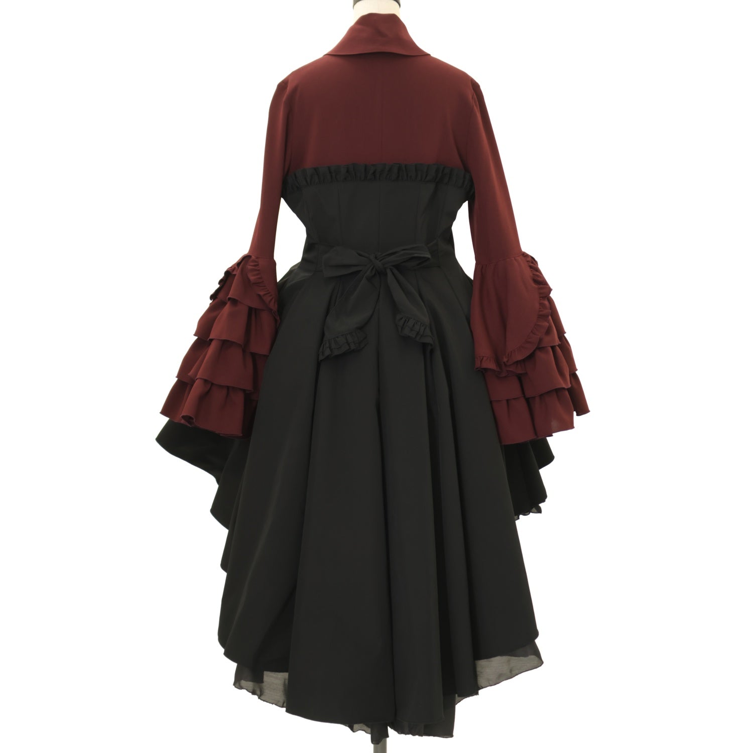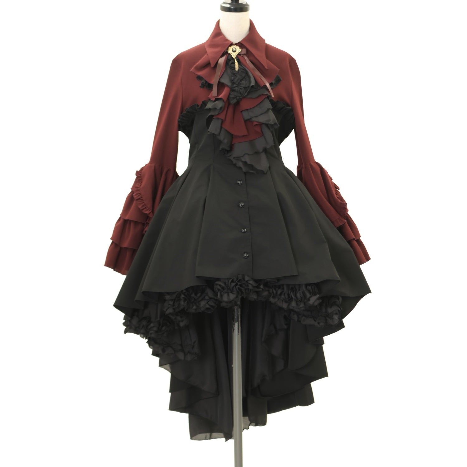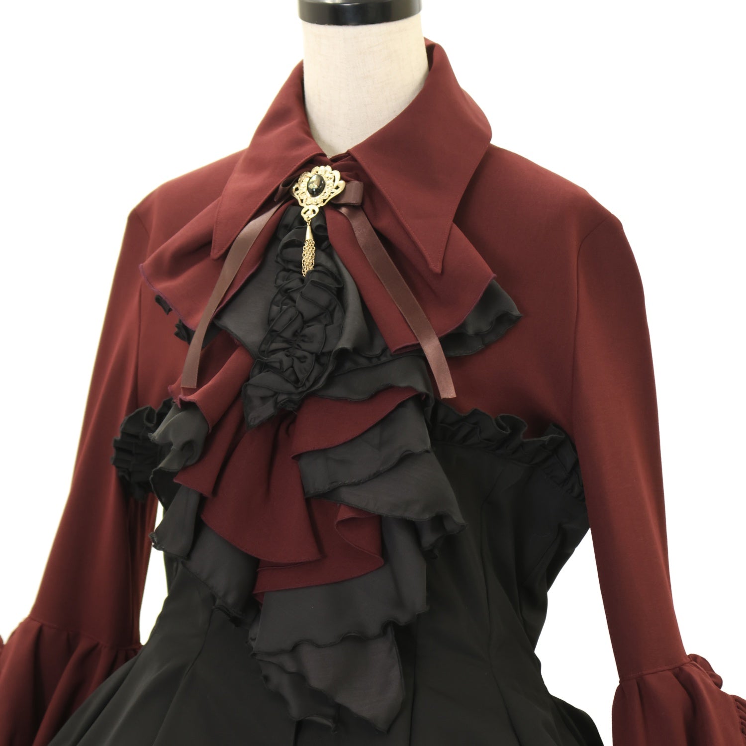 【USED】ドレープタイ付きゴシックエレガンスブラウスワンピース:えんじ×黒