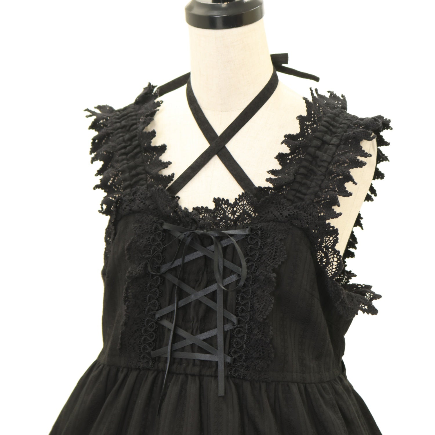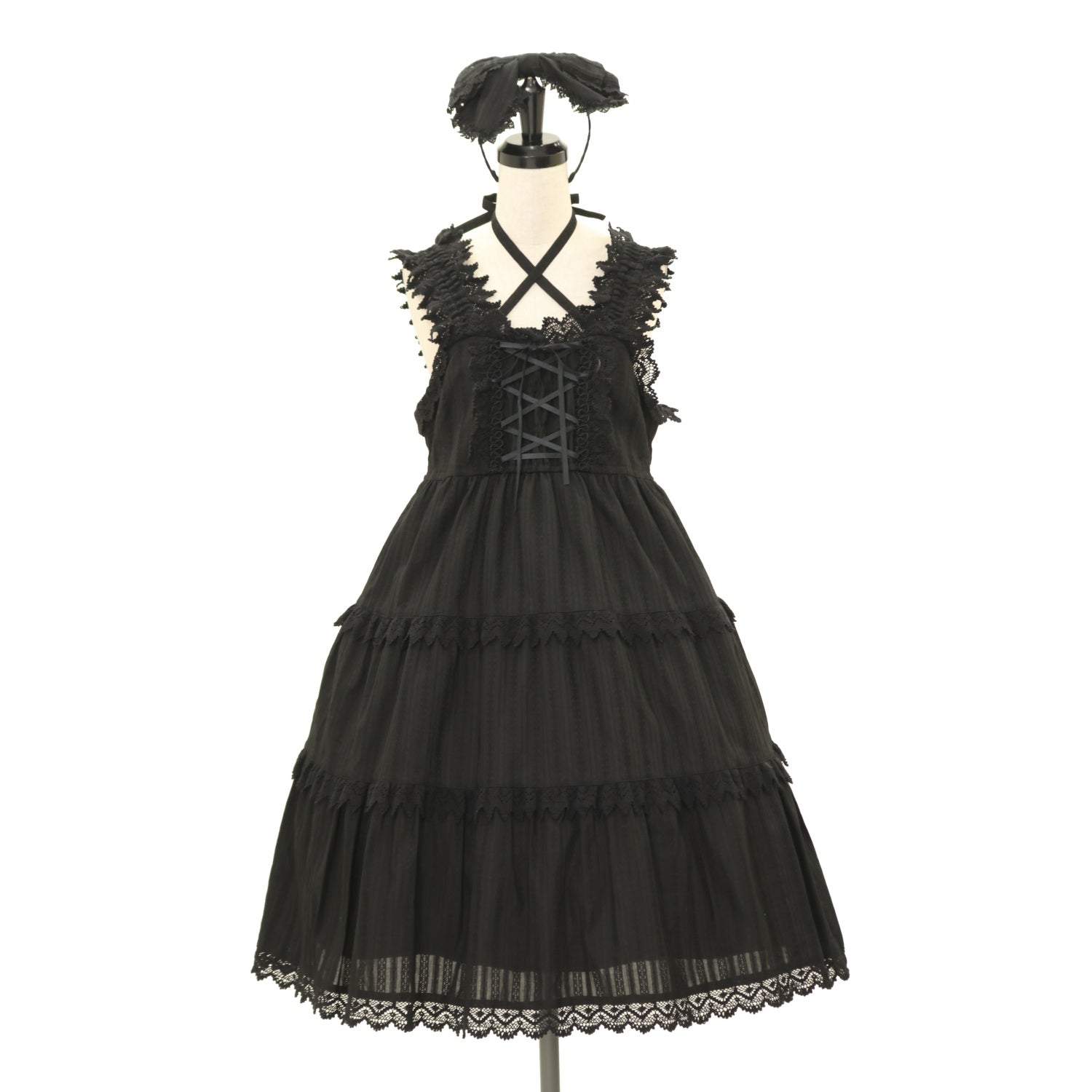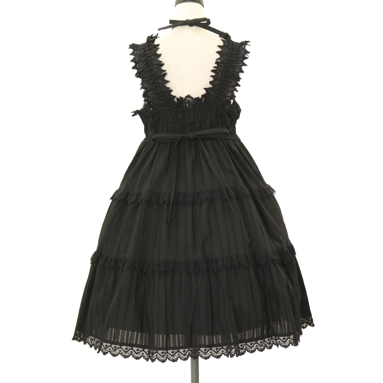 【USED】からみ3段ティアードジャンパースカートセット(黒×黒)