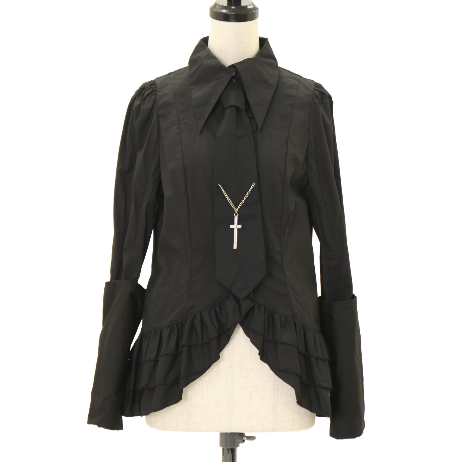 【USED】【Mサイズ】クロスチャームネクタイ付フリルブラウス