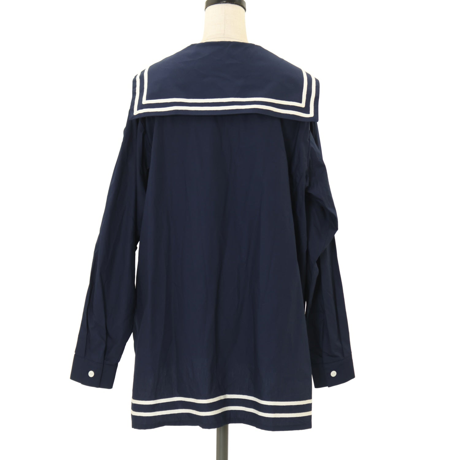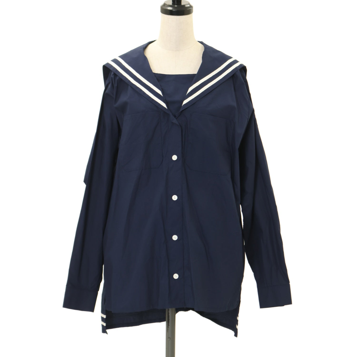 【USED】ボーイフレンドセーラーシャツ【紺×白ライン】