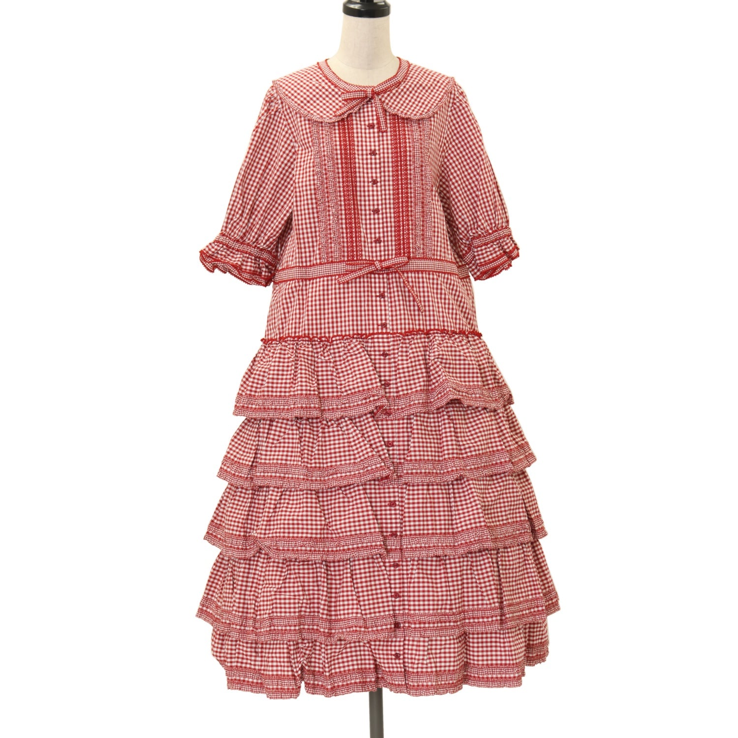【USED】【alcali × MISAKO AOKI】コットンギンガム前あきワンピース