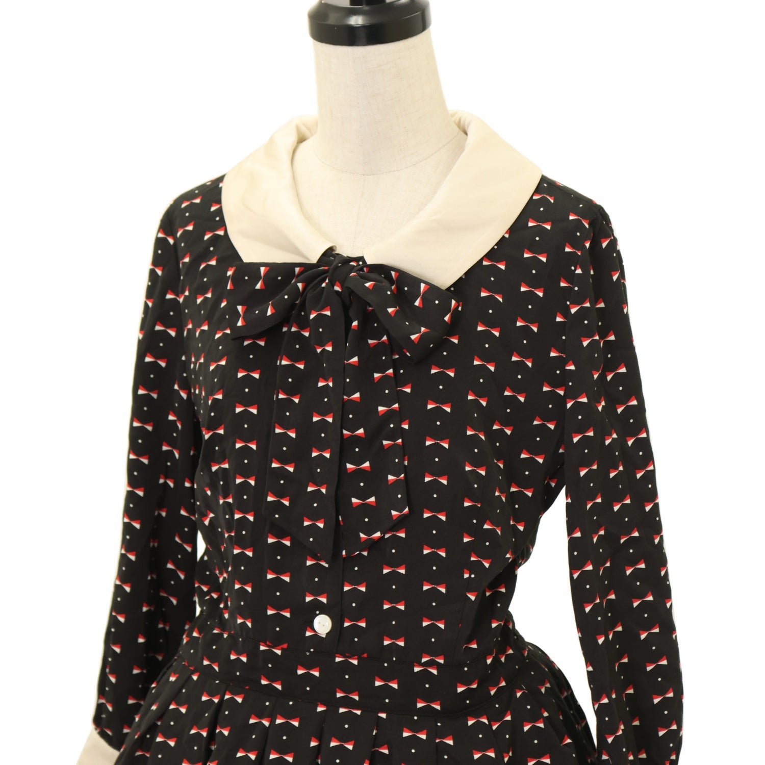 【USED】リボンプリントブラウスワンピース