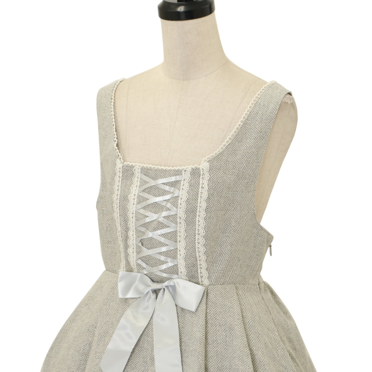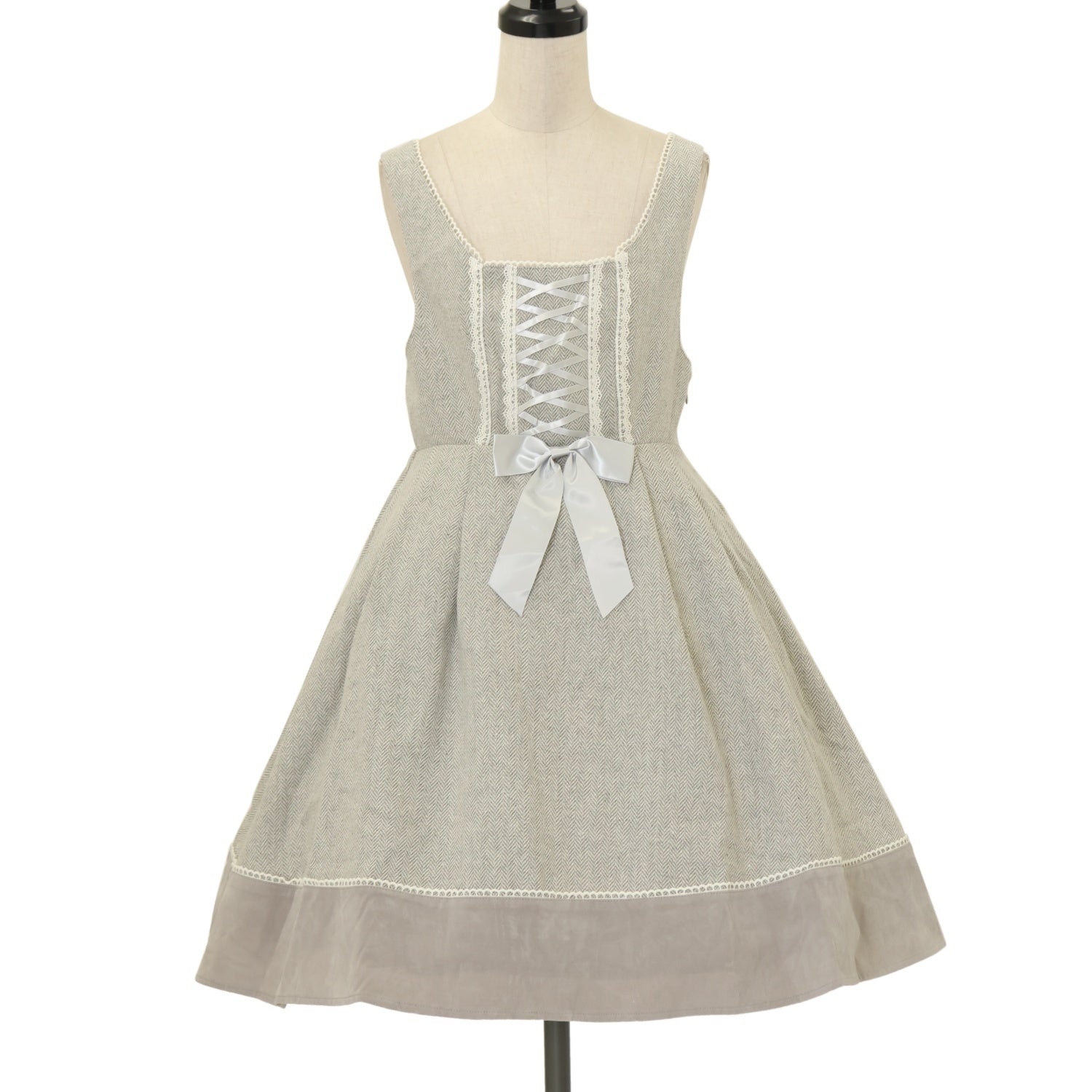 【USED】フロントレースアップヘリンボーンジャンスカ