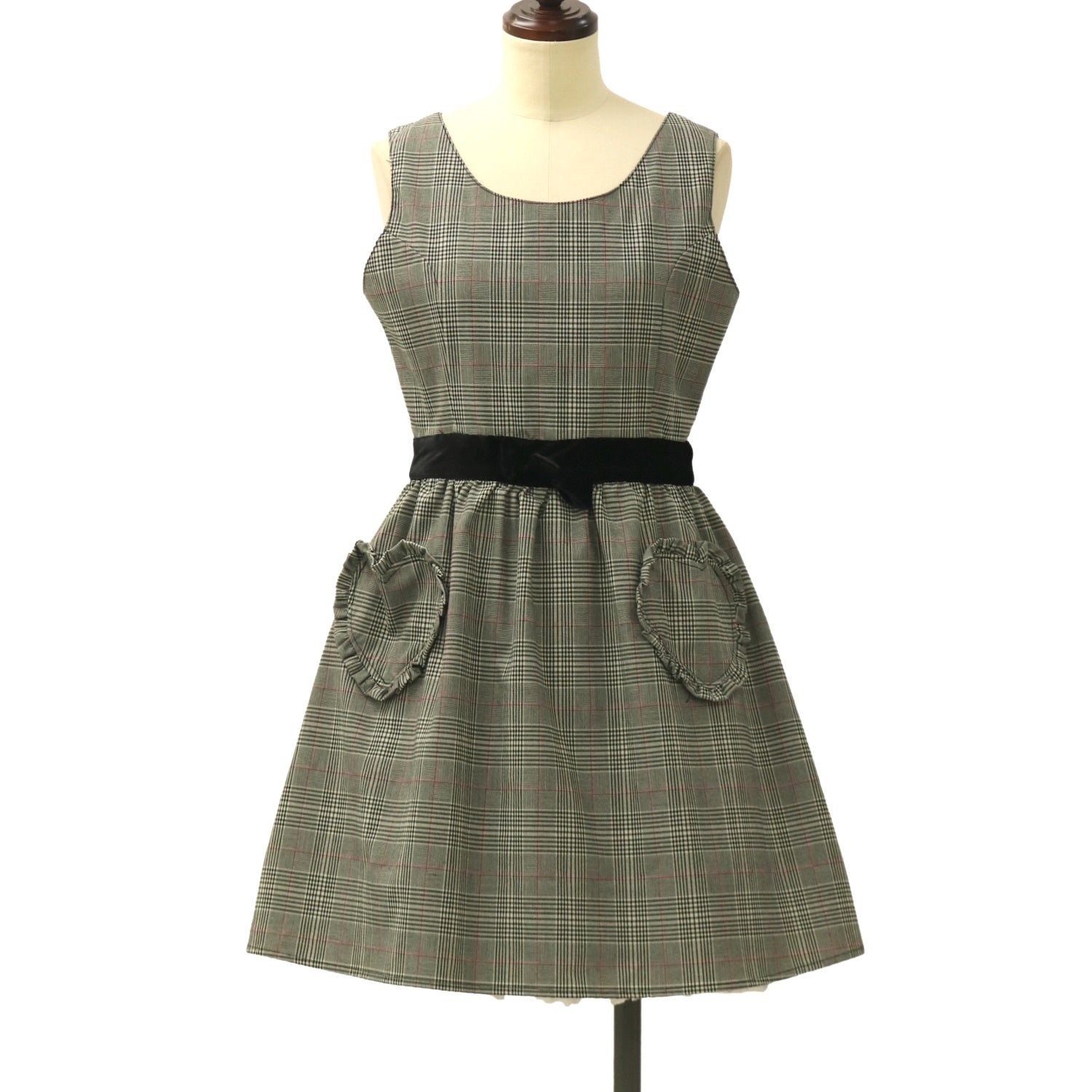 【USED】【Mサイズ】グレンチェックハートポケットジャンパースカート