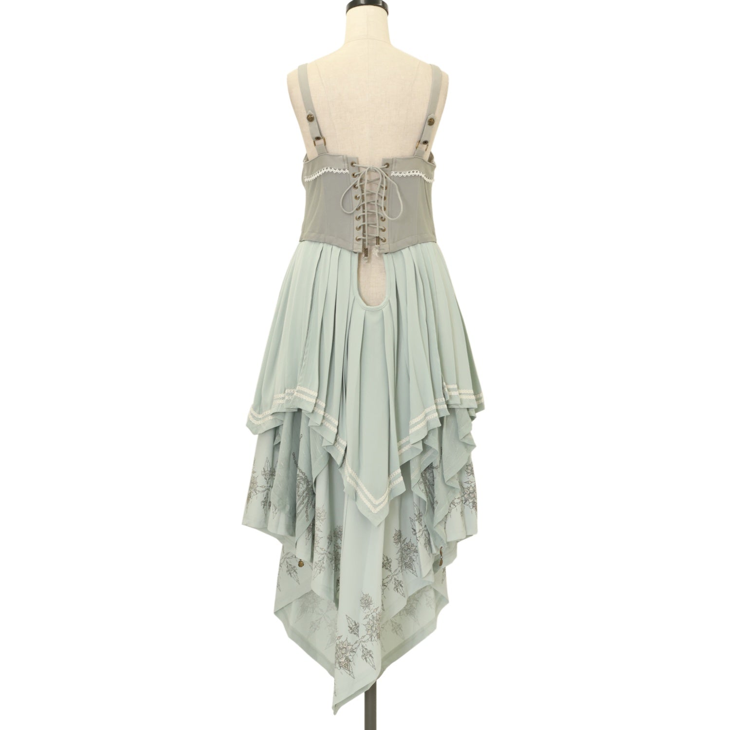 編み上げでサイズ調節可能 肩紐段階調節可能 プリーツフリル・裾チャーム取り外し可能 |