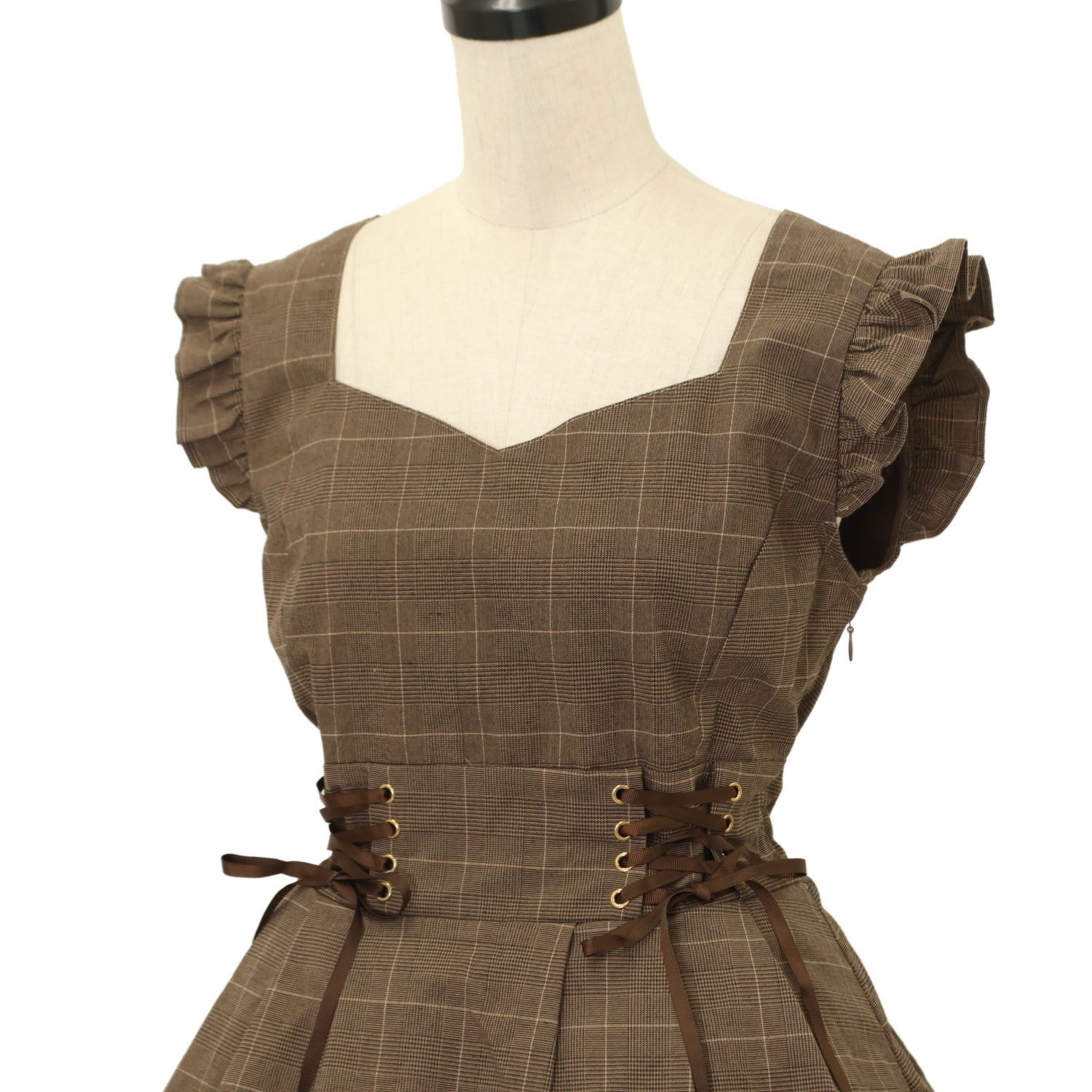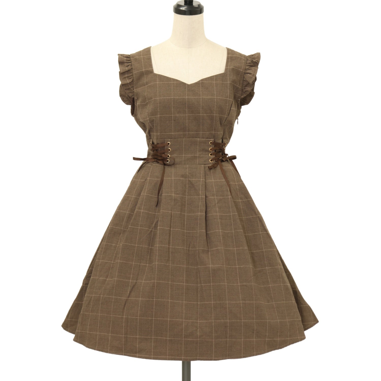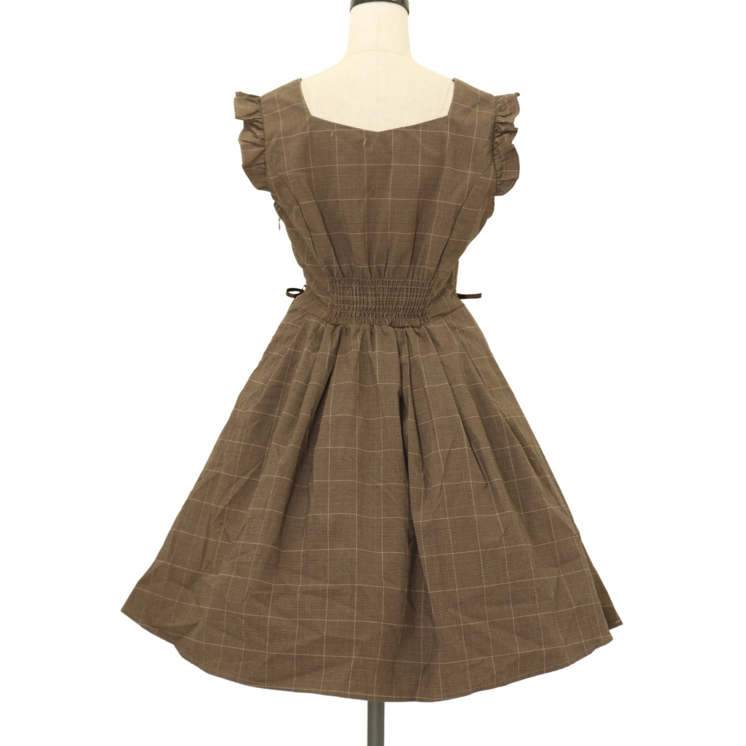 【USED】ウエストWレースアップ肩フリルワンピース