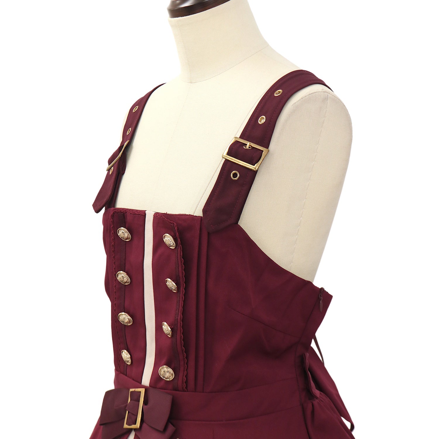編み上げリボンで調節可能 ウエストリボンブローチ取り外し可能 |
