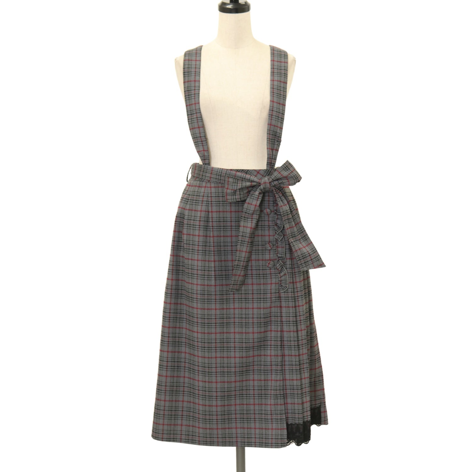 【USED】【サイズ2】サス付きサイドプリーツミディスカート