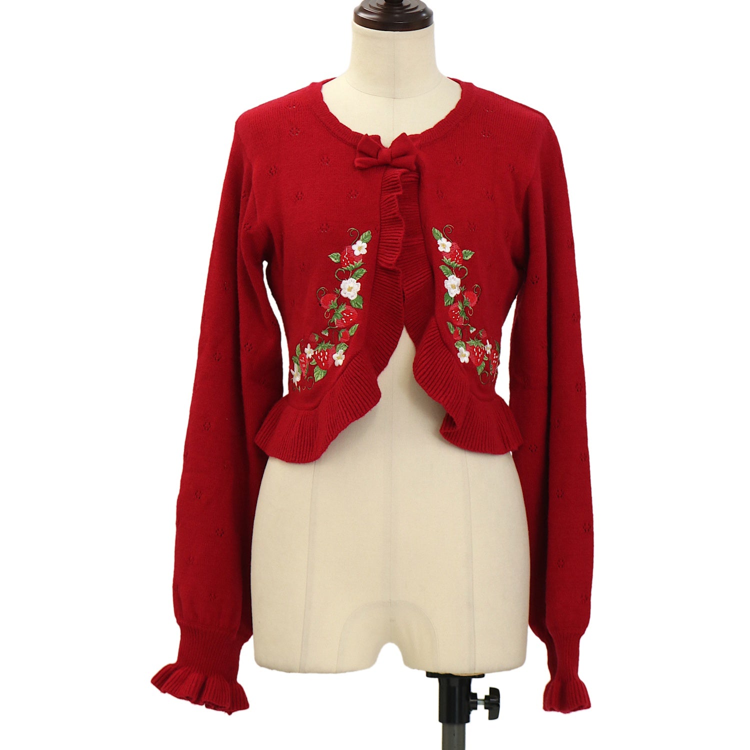 【USED】【Mサイズ】いちご刺繍ニットボレロ