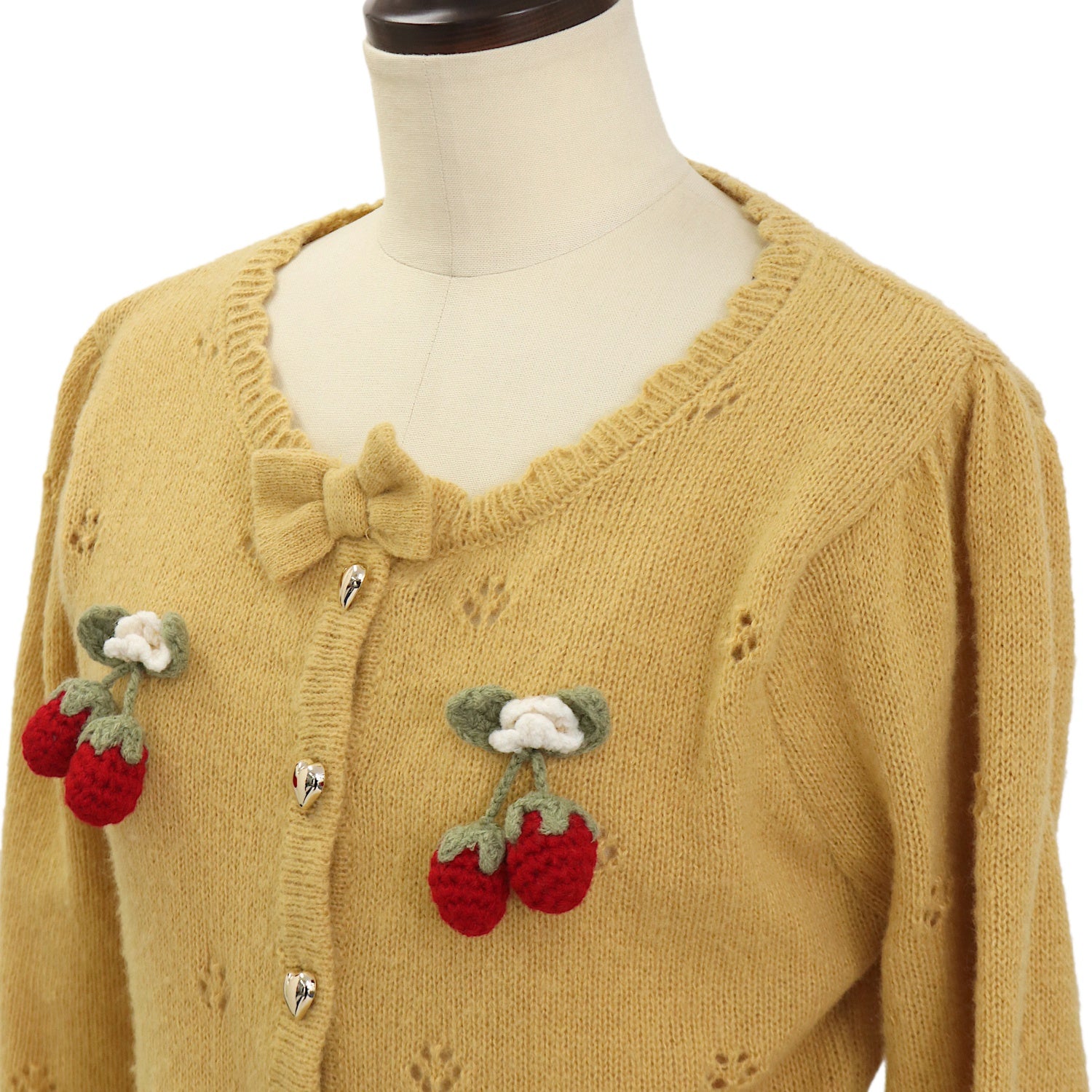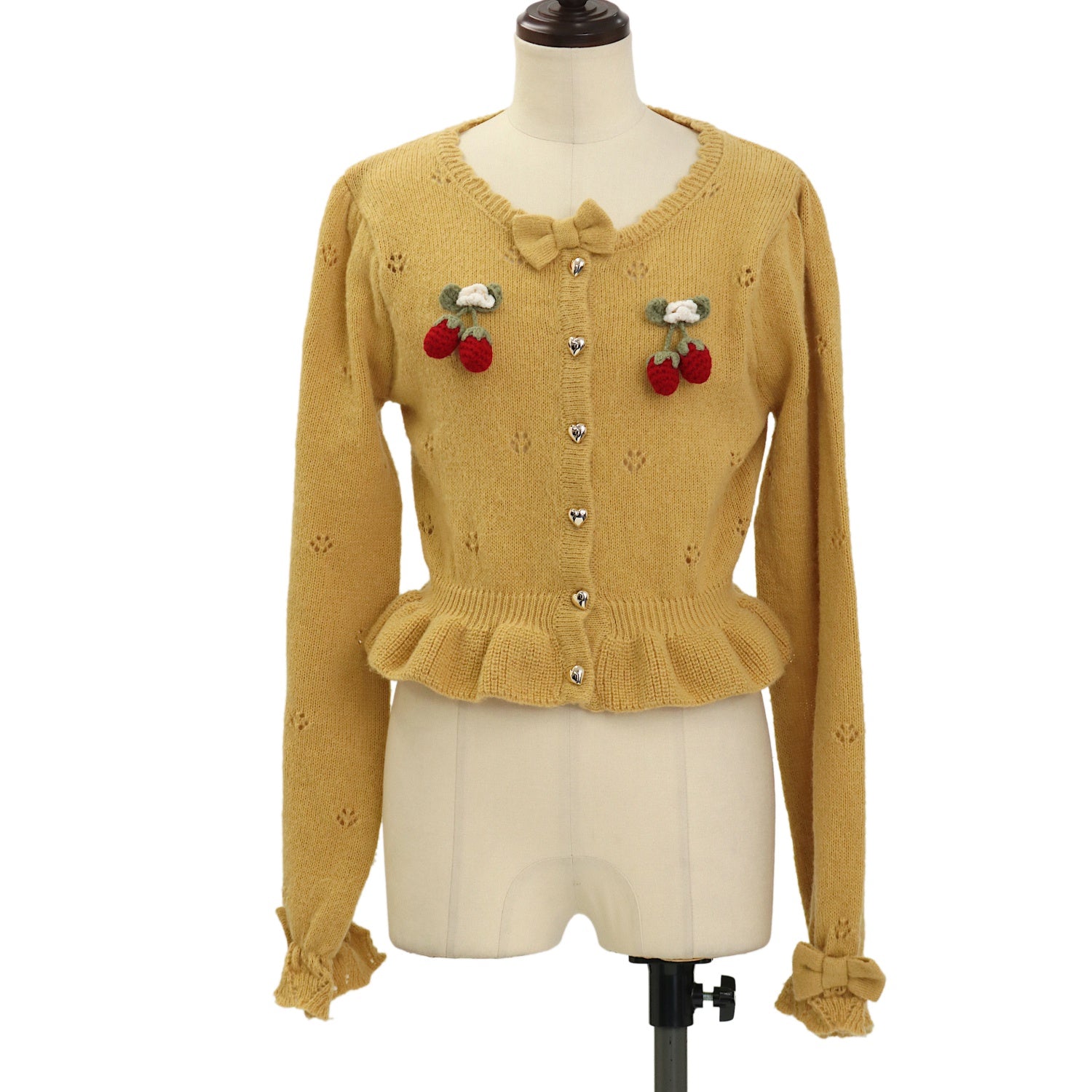 【USED】【axes femme kawaii/Mサイズ】苺の編みぐるみニットカーデ