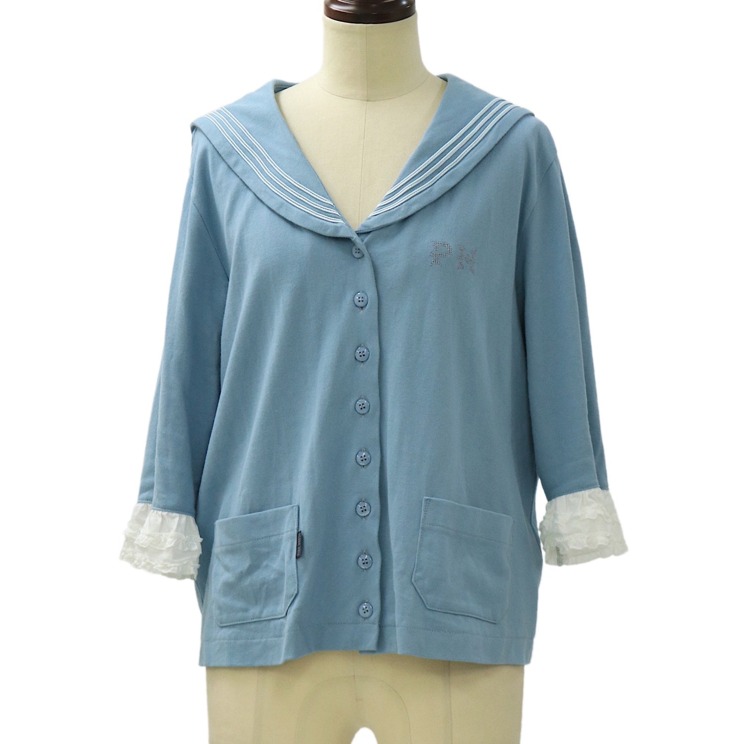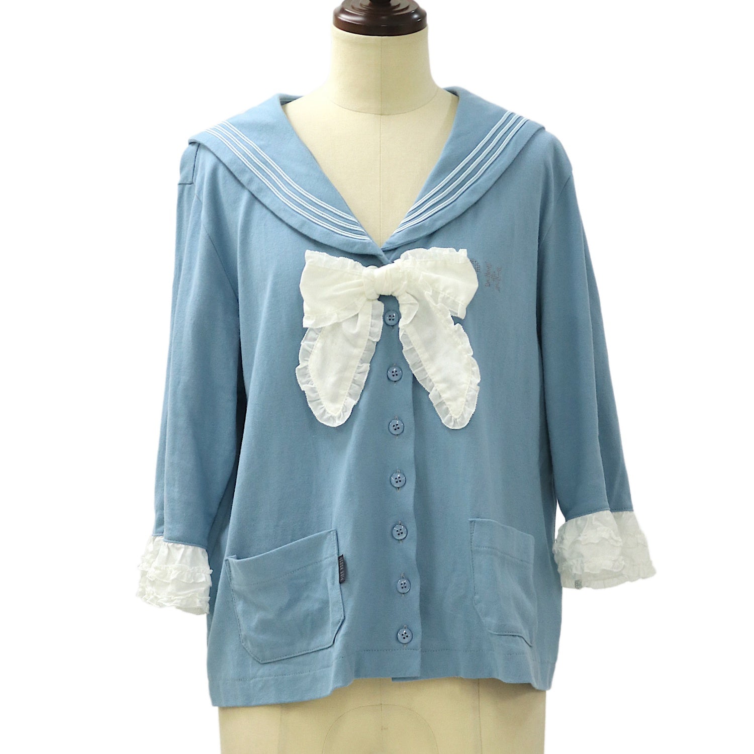 【USED】リボンブローチ付きセーラーカラーカーディガン