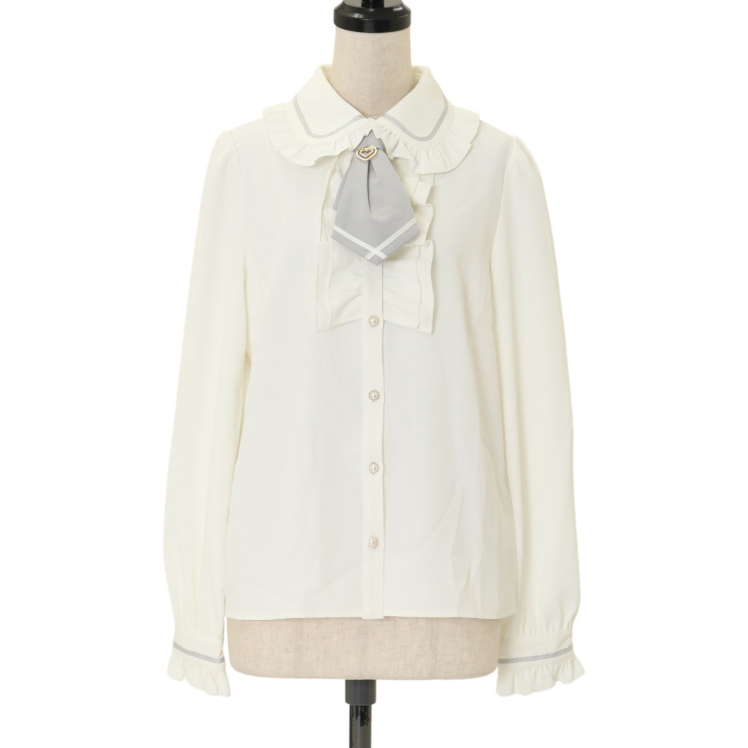 【USED】【サイズ2】ダブルフリルネクタイブラウス