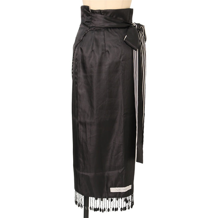 【USED】【サイズ3】ストライプサテンロングラップスカート