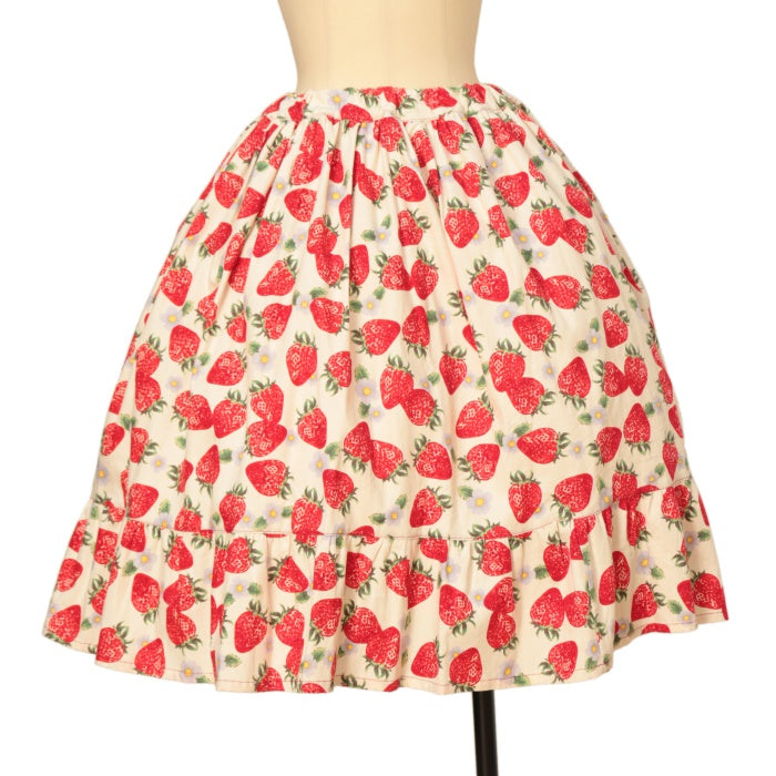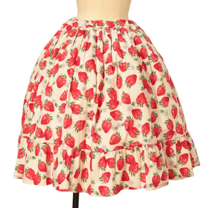 【USED】イチゴ柄サーキュラースカート【白系60cm丈】