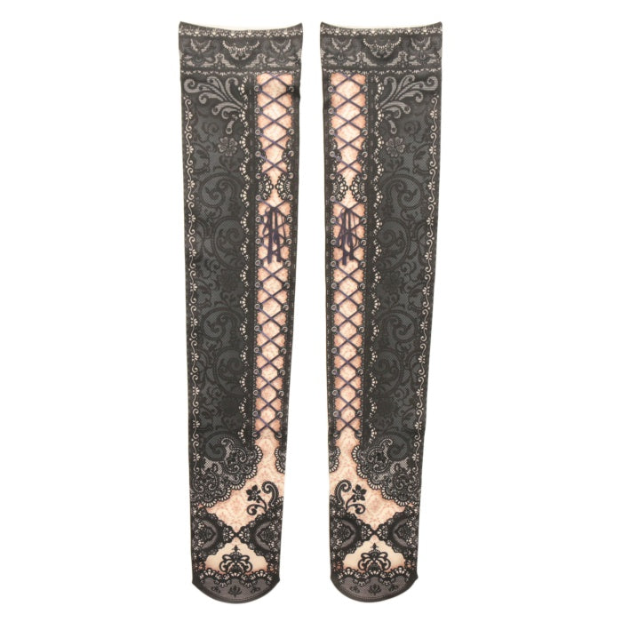 【USED】corset over knee socks Side Lace-up BLACK