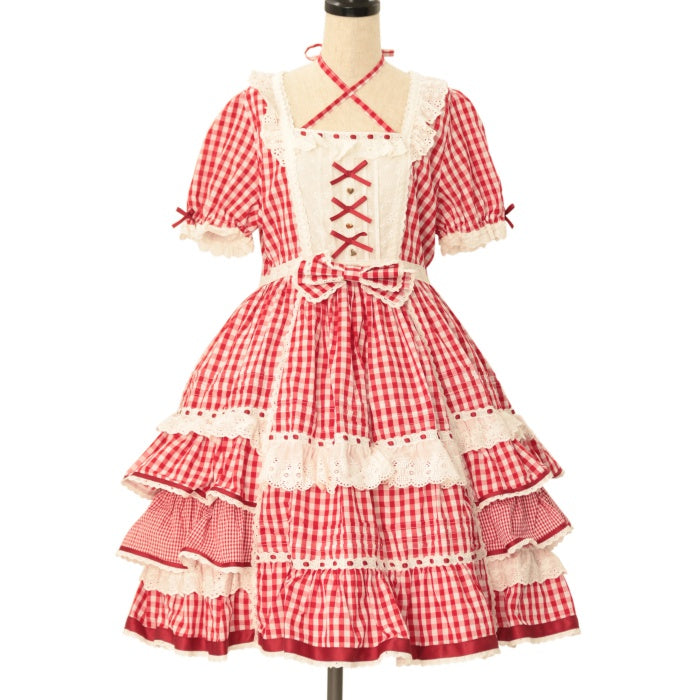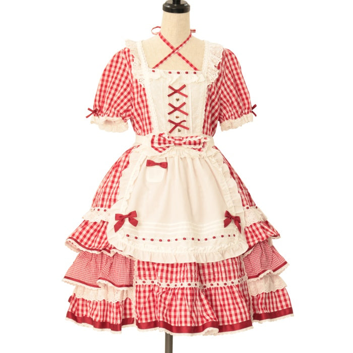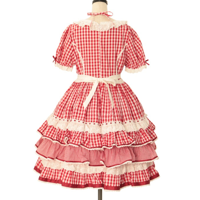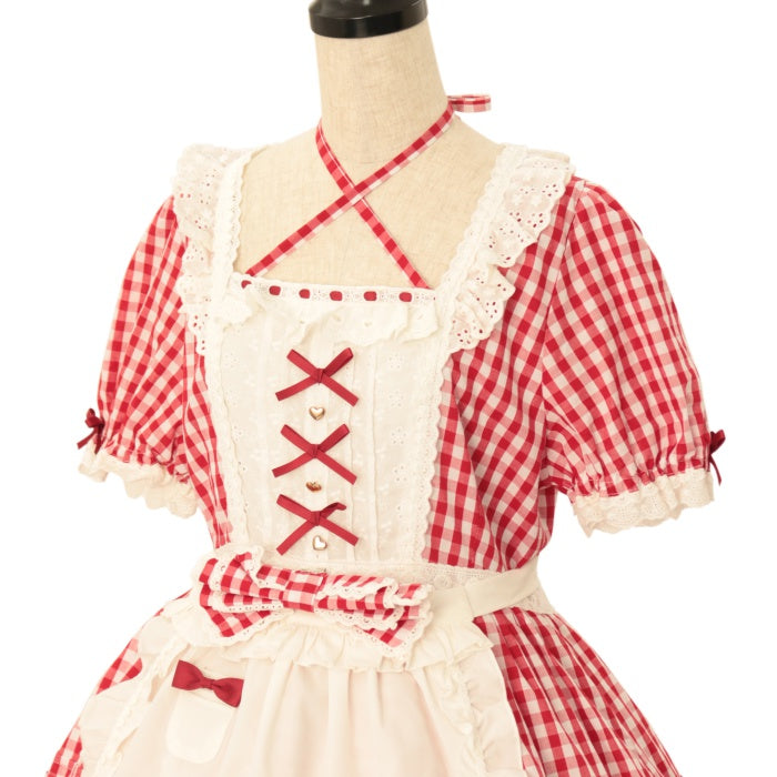 【USED】【Lサイズ】夏の乙女のピクニック エプロン付きワンピース