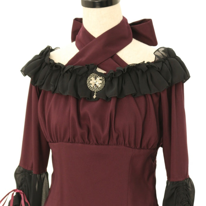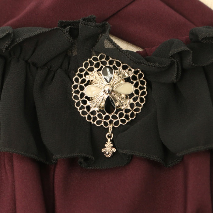 Product status | 使用感あり 後ろ編み上げリボン先端に若干のほつれあり ブローチの金具にくすみあり |