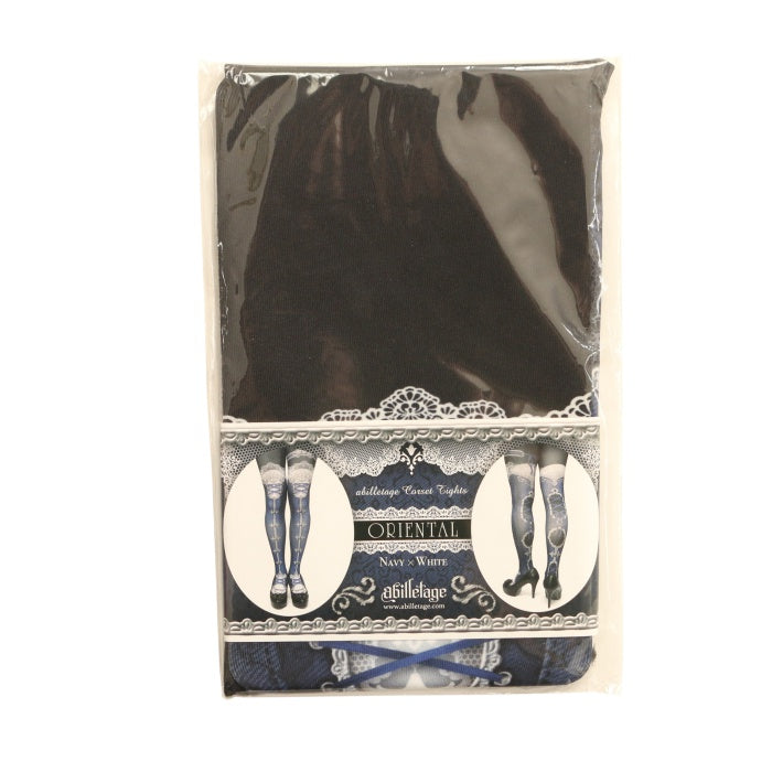 【USED】corset tights ORIENTAL -NAVY×WHITE-