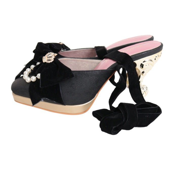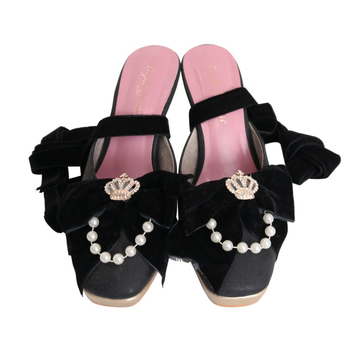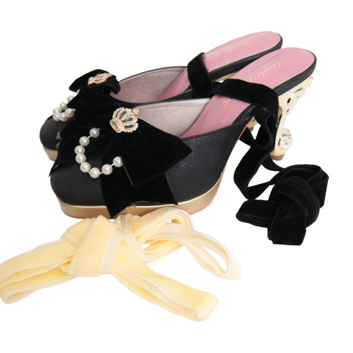 ソール:1.5cm ヒール:9cm レースアップリボン2種類付属(ブラック・アイボリー) リボンクリップ取り外し可能 |