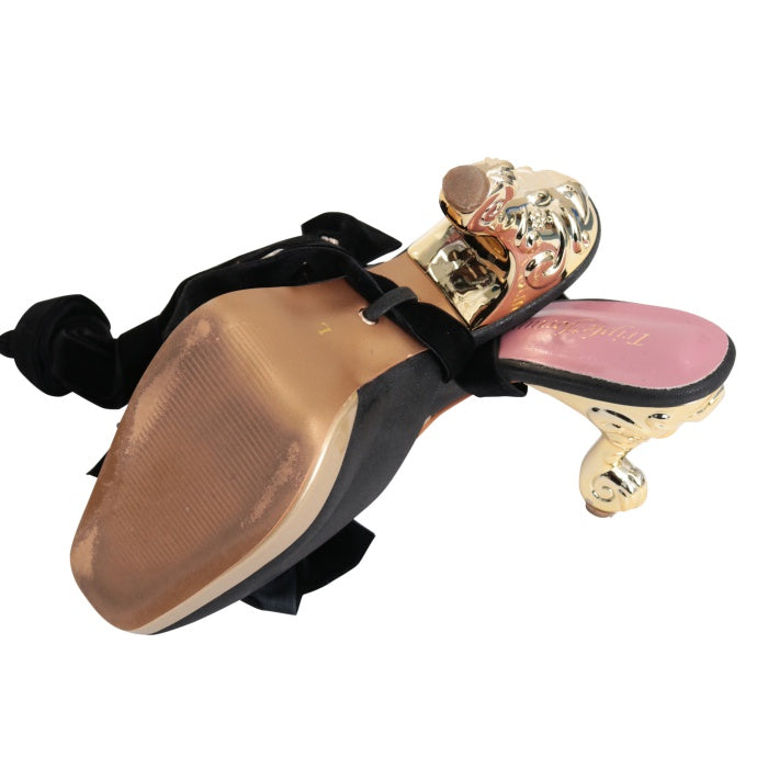 | Product status | 使用感あり ヒールに若干の擦り減りあり ヒールのメッキに剥がれあり 靴底に汚れあり リボンクリップのクラウンモチーフに接着剤の露出あり 各リボン先端にほつれあり |