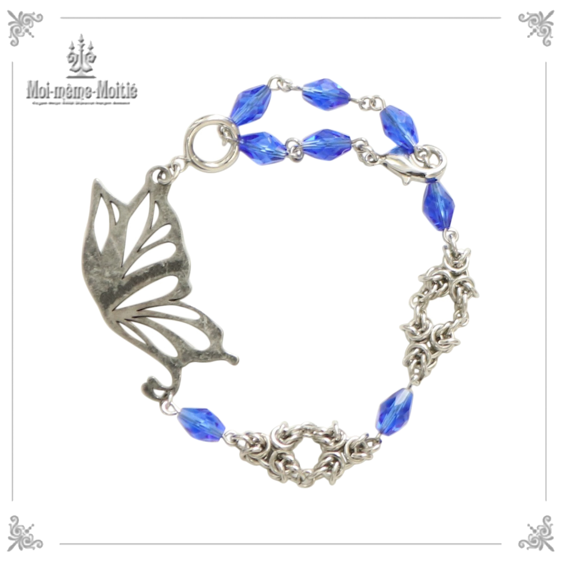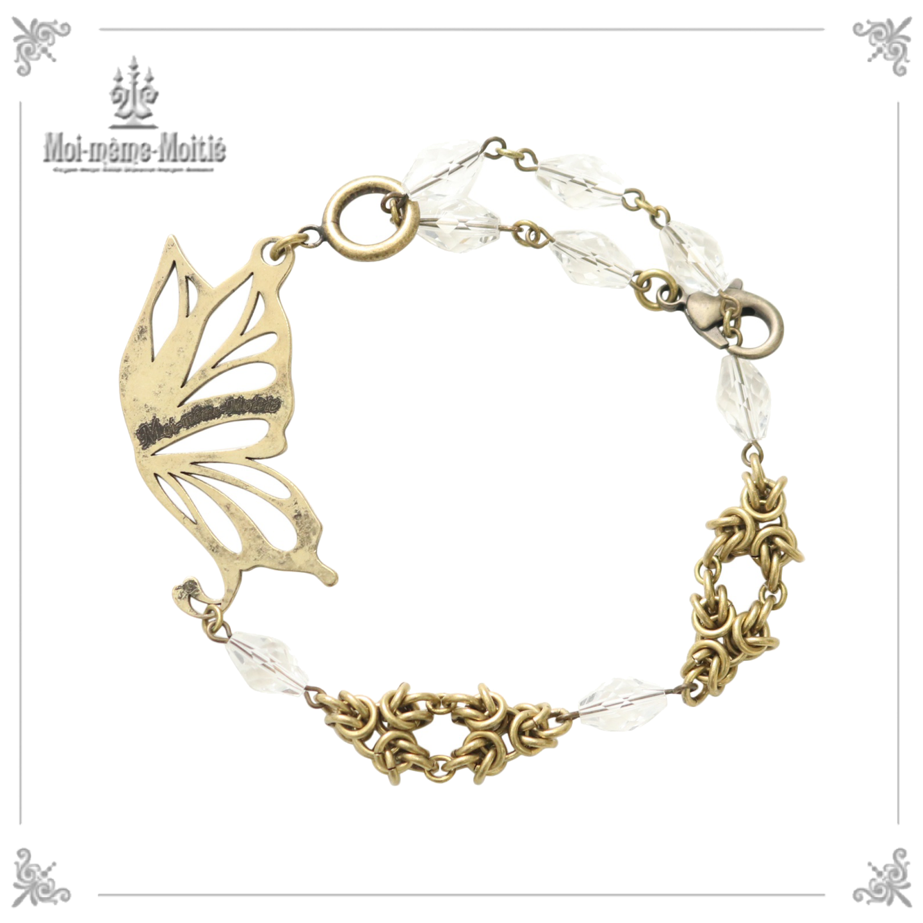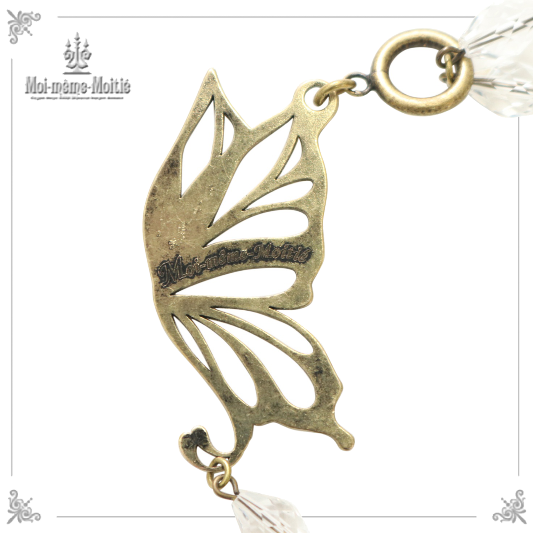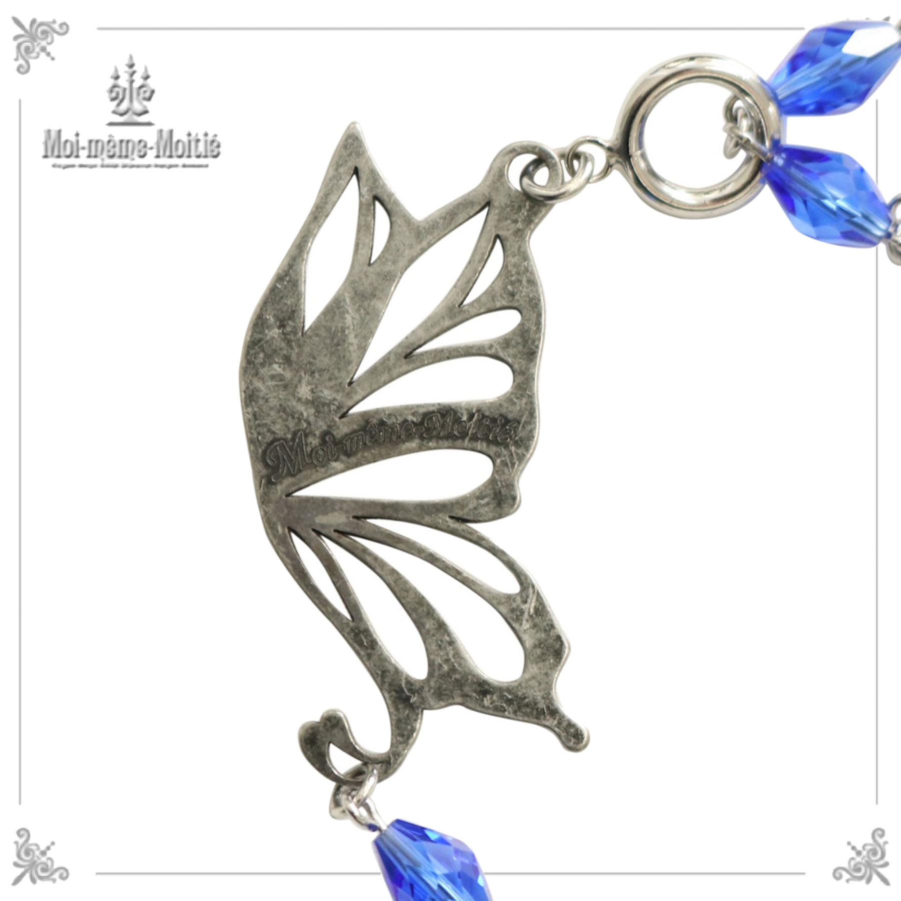 幾重に編まれたチェーンは、手編みで製作し、オリジナルの蝶チャームが付いています。