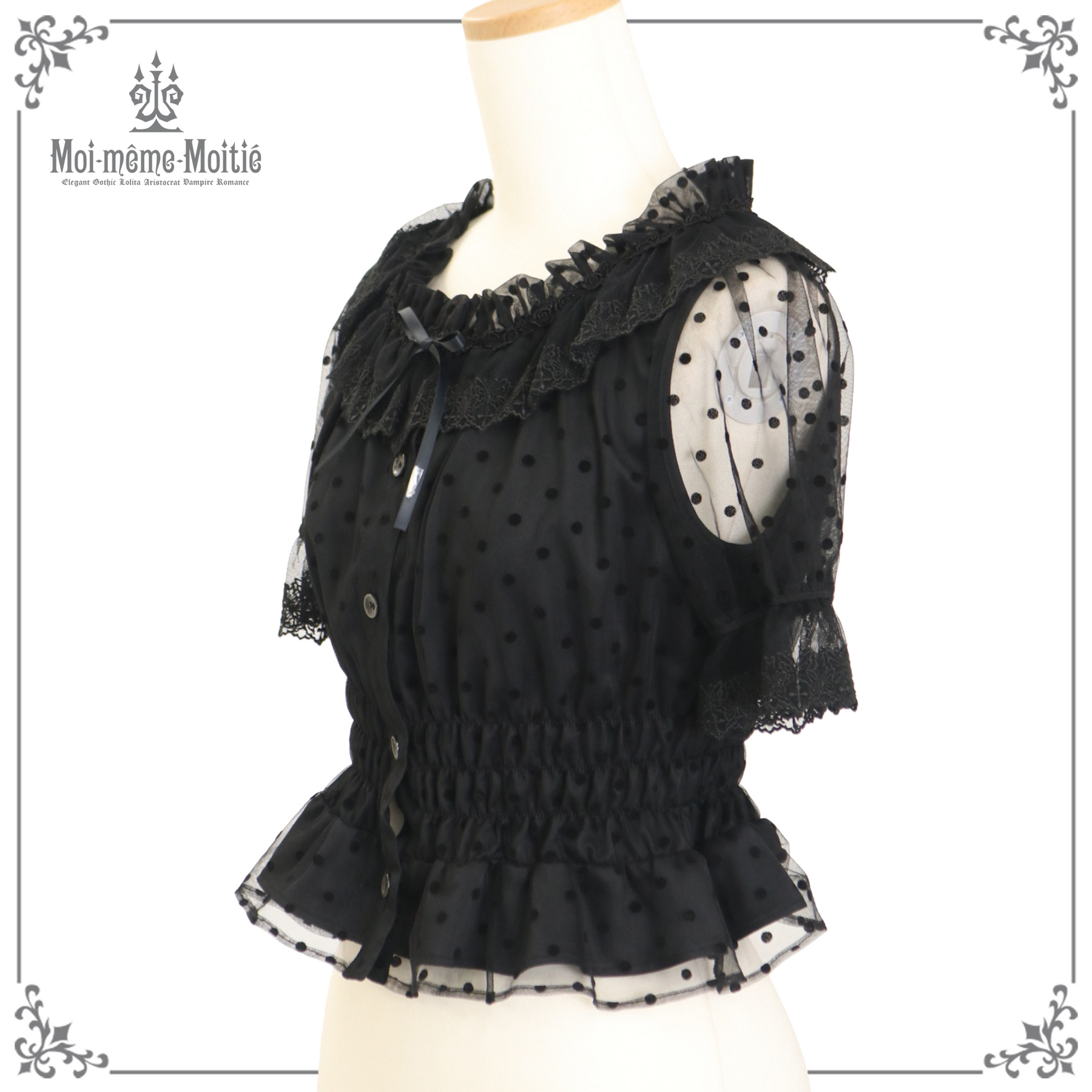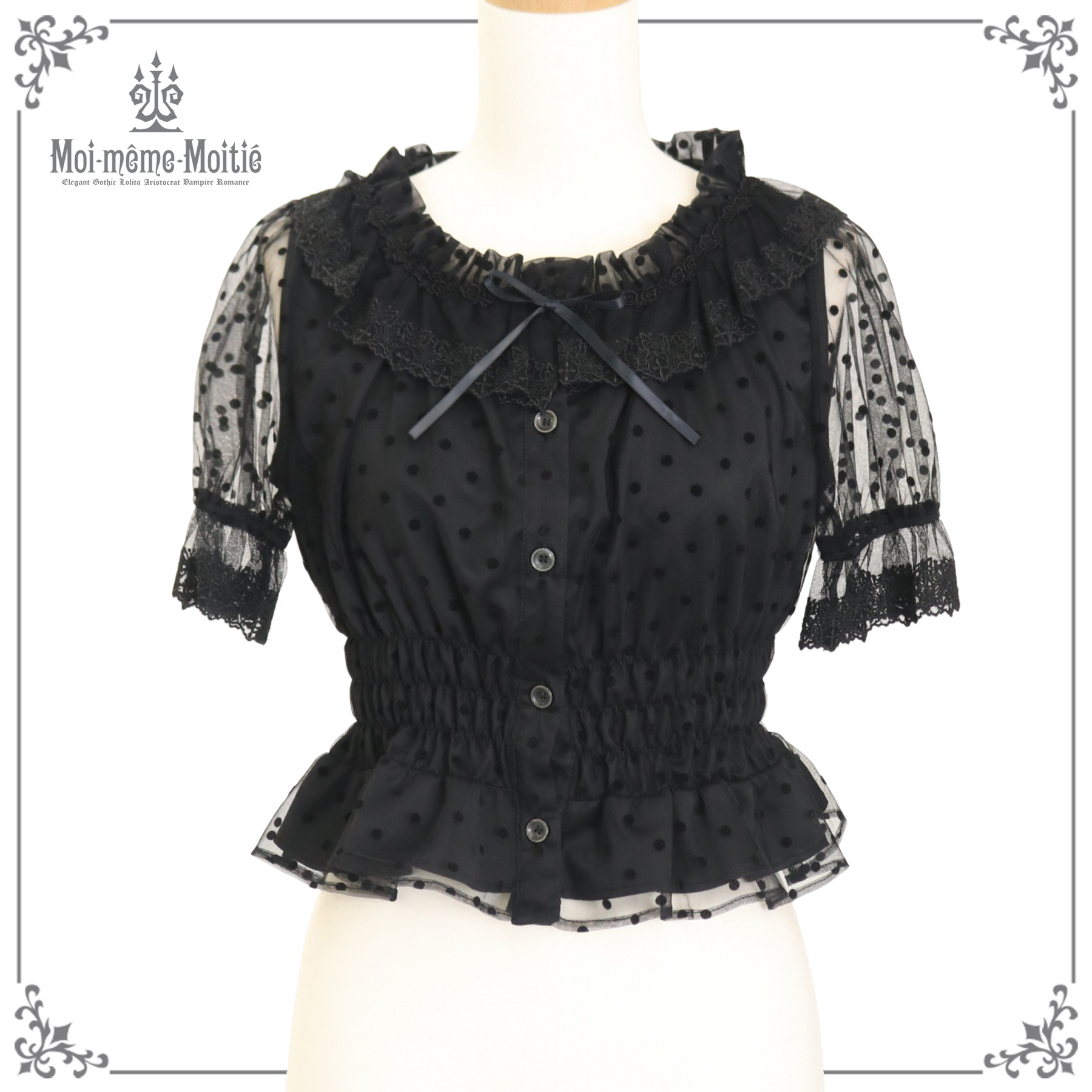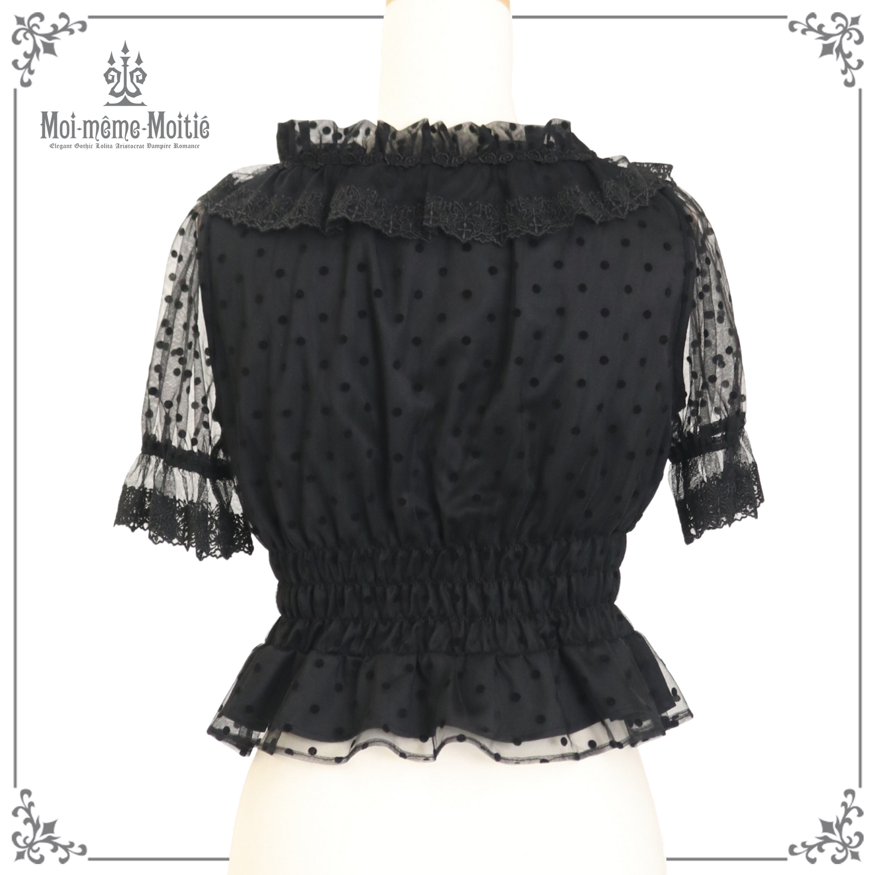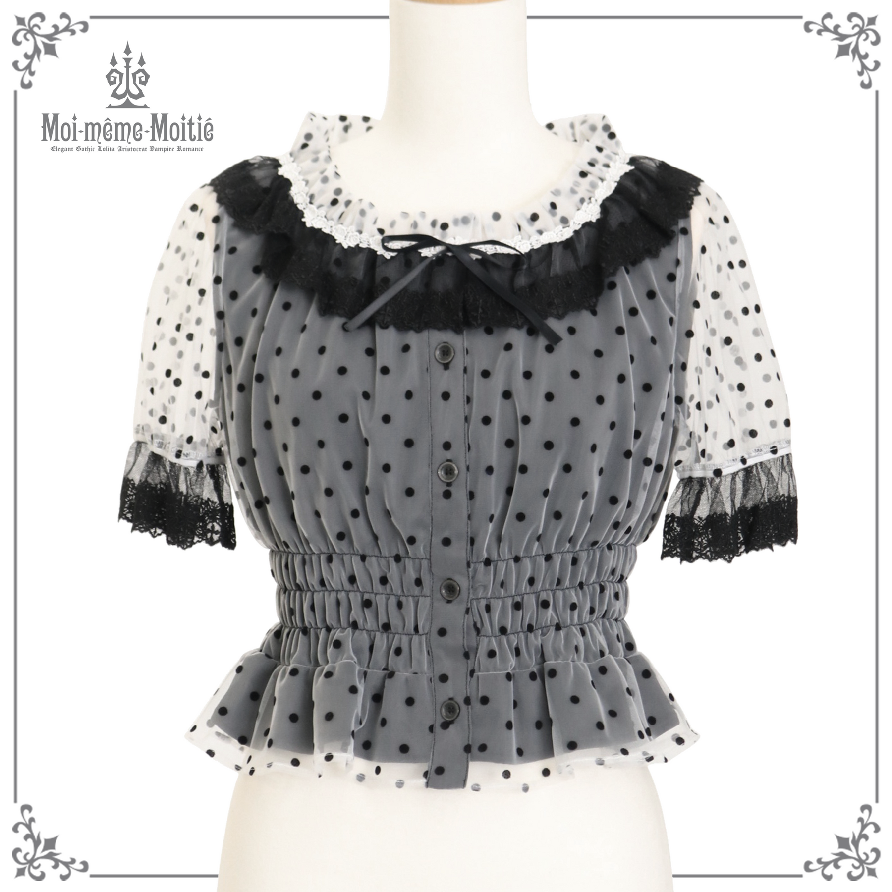 ドット柄フロッキーのチュール生地で、裾がペプラムのオーバーブラウスです。